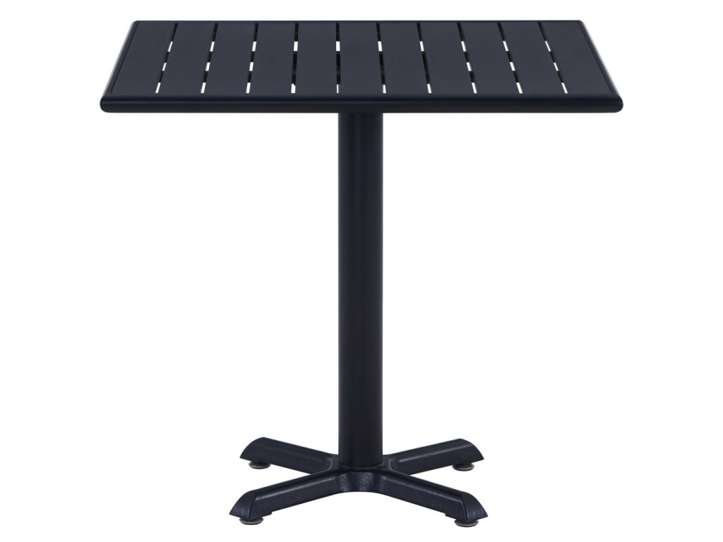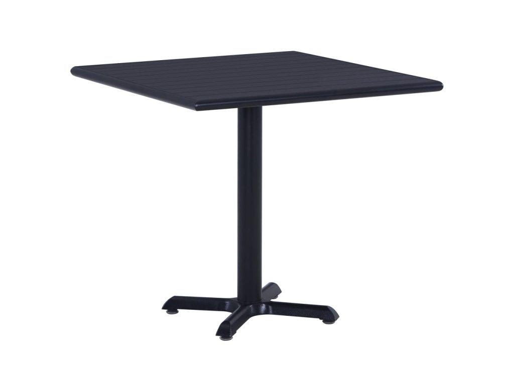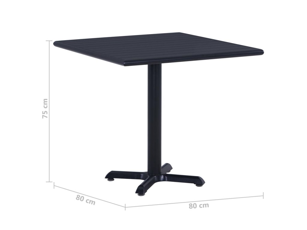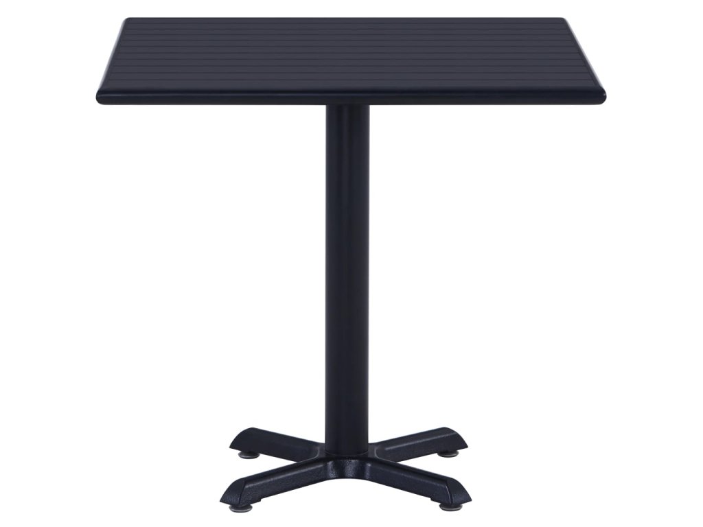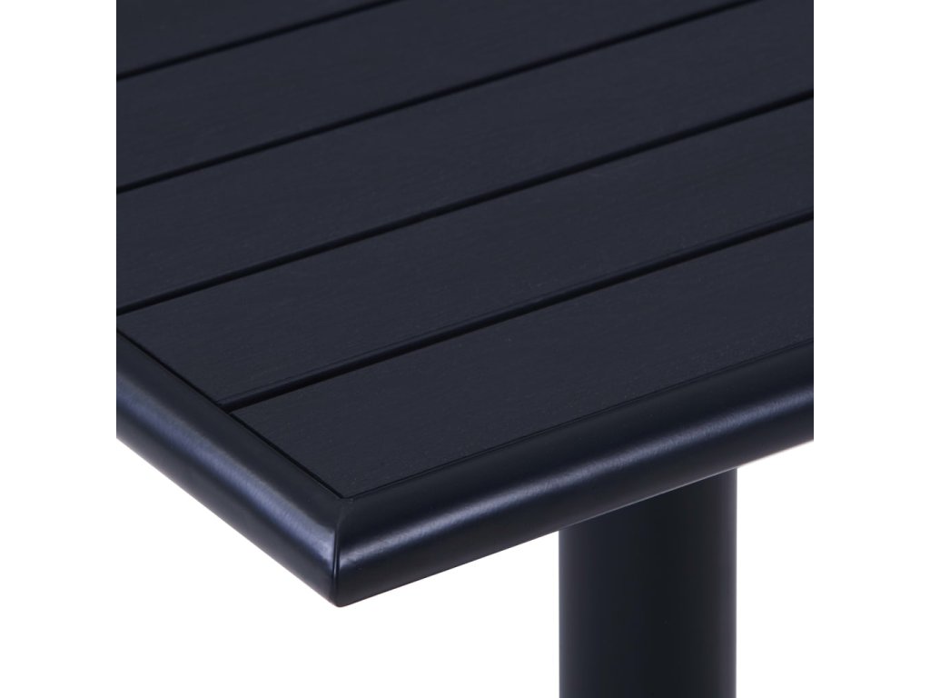 Vonkajší stôl má lamelovú dosku z odolného plastového dreva, ktorá je odolná voči poveternostným vplyvom a ľahko sa čistí. Kovový rám s práškovým povrchom a krížovým dizajnom zaisťuje odolnosť a stabilitu.