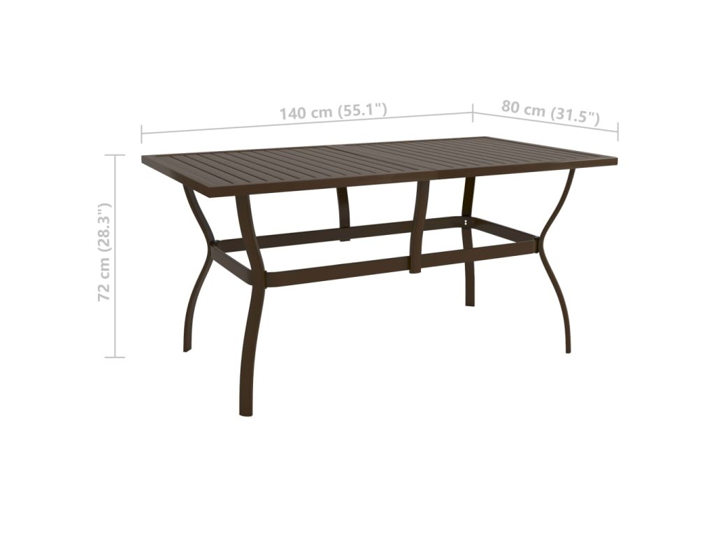 Tento vonkajší stôl je vyrobený z ocele s práškovaným povrchom, vďaka čomu je robustný a stabilný.