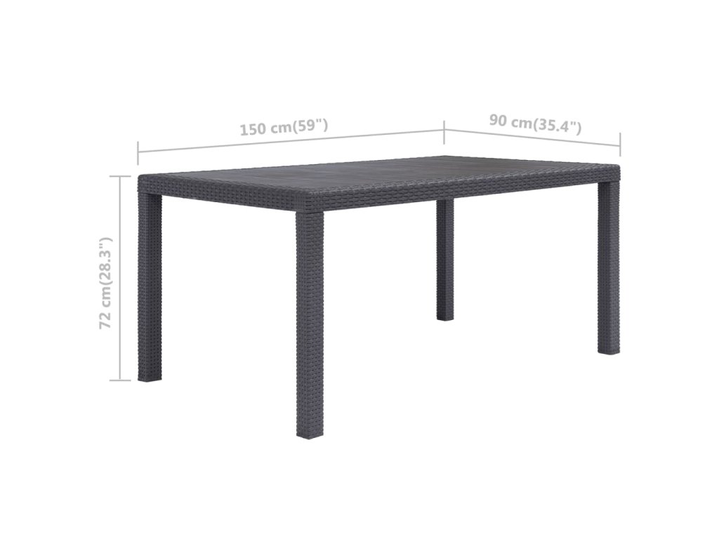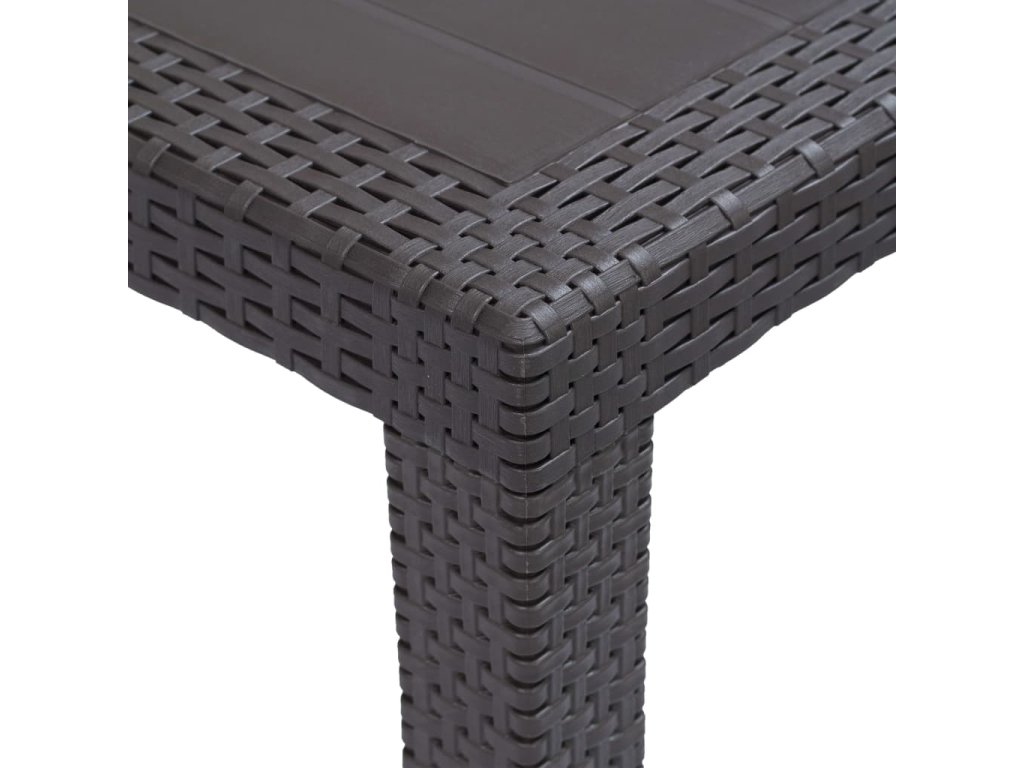 Jedálenský stôl s ratanovým vzhľadom je vyrobený z pevného plastu, vďaka čomu je trvácny, silný, odolný voči vplyvom počasia a ľahko čistiteľný. Jeho ratanový vzhľad dodá do vášho vonkajšieho priestoru prírodný nádych. Záhradný stôl je tiež ľahký a jednoducho sa premiestňuje.