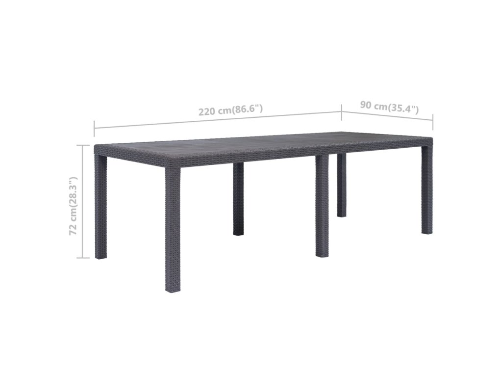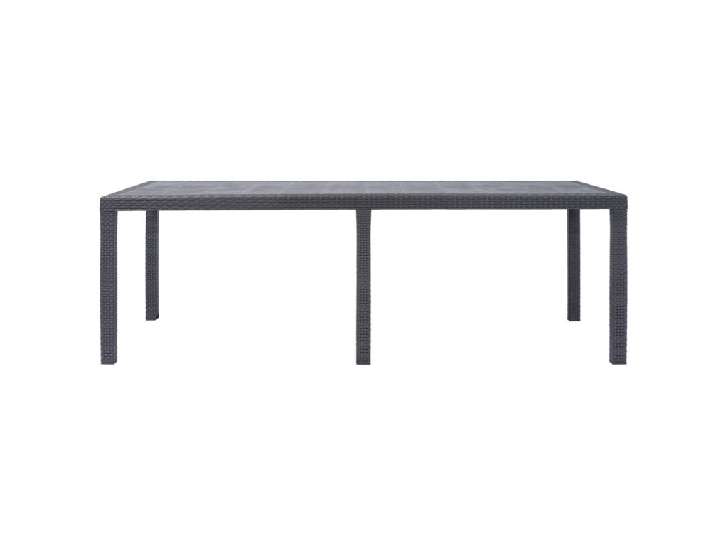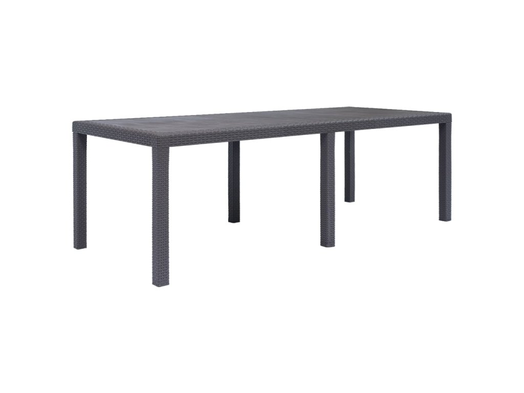Jedálenský stôl s ratanovým vzhľadom je vyrobený z pevného plastu, vďaka čomu je trvácny, silný, odolný voči vplyvom počasia a ľahko čistiteľný. Jeho ratanový vzhľad dodá do vášho vonkajšieho priestoru prírodný nádych. Záhradný stôl je tiež ľahký a jednoducho sa premiestňuje.
