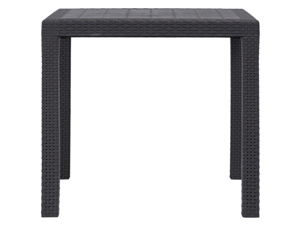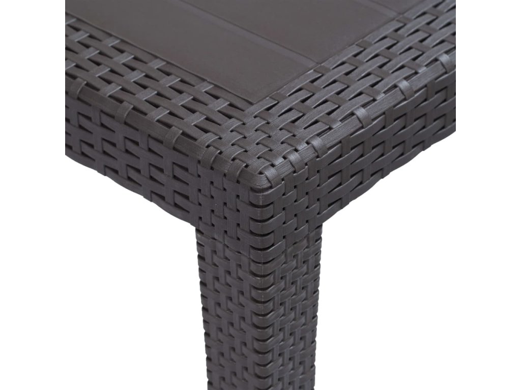 Jedálenský stôl s ratanovým vzhľadom je vyrobený z pevného plastu, vďaka čomu je trvácny, silný, odolný voči vplyvom počasia a ľahko čistiteľný. Jeho ratanový vzhľad dodá do vášho vonkajšieho priestoru prírodný nádych. Záhradný stôl je tiež ľahký a jednoducho sa premiestňuje.