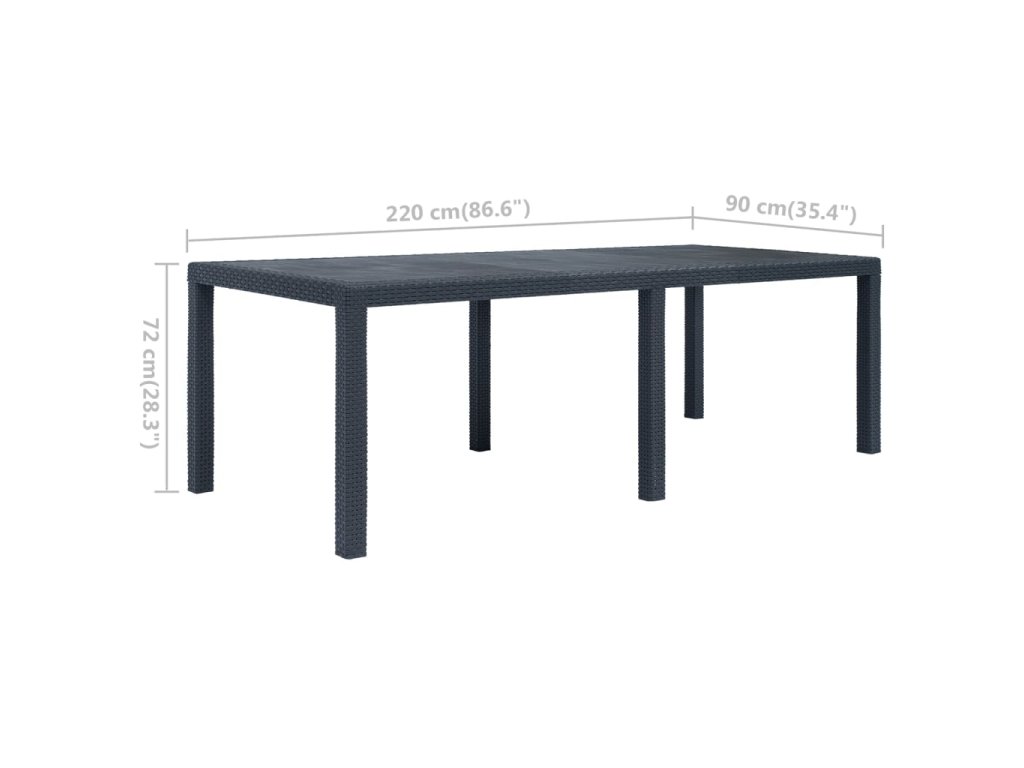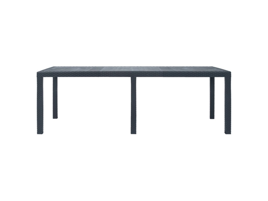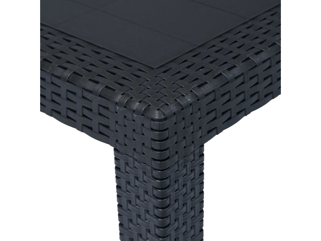 Jedálenský stôl s ratanovým vzhľadom je vyrobený z pevného plastu, vďaka čomu je trvácny, silný, odolný voči vplyvom počasia a ľahko čistiteľný. Jeho ratanový vzhľad dodá do vášho vonkajšieho priestoru prírodný nádych. Záhradný stôl je tiež ľahký a jednoducho sa premiestňuje.