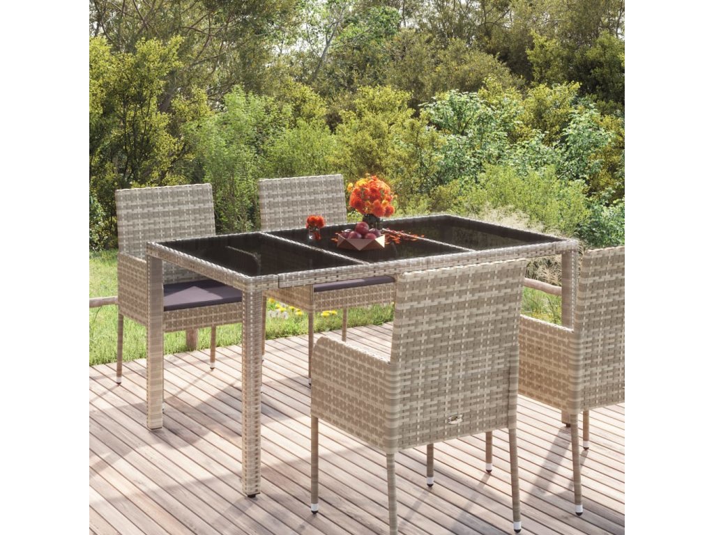 - Materiál: PE ratan, oceľ s práškovou povrchovou úpravou, tvrdené sklo