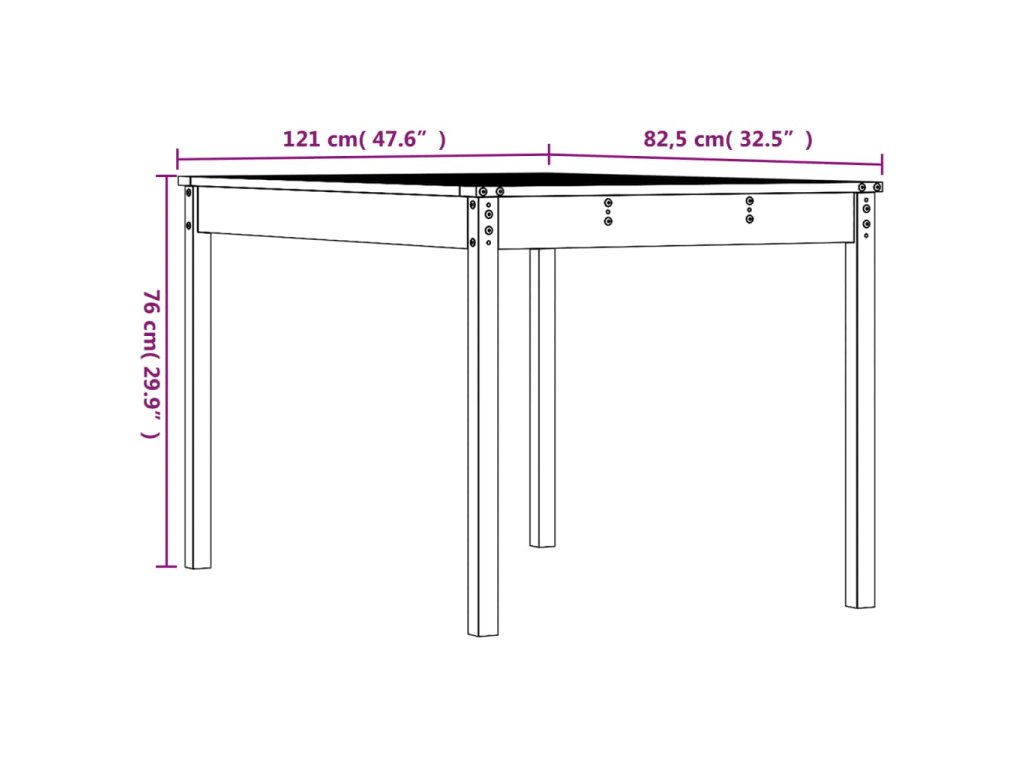 - Masívne borovicové drevo: Záhradný stolík je vyrobený z masívneho borovicového dreva. Masívne borovicové drevo je krásny prírodný materiál. Borovicové drevo má rovnú štruktúru a uzly dodávajú materiálu jeho typický rustikálny vzhľad.
