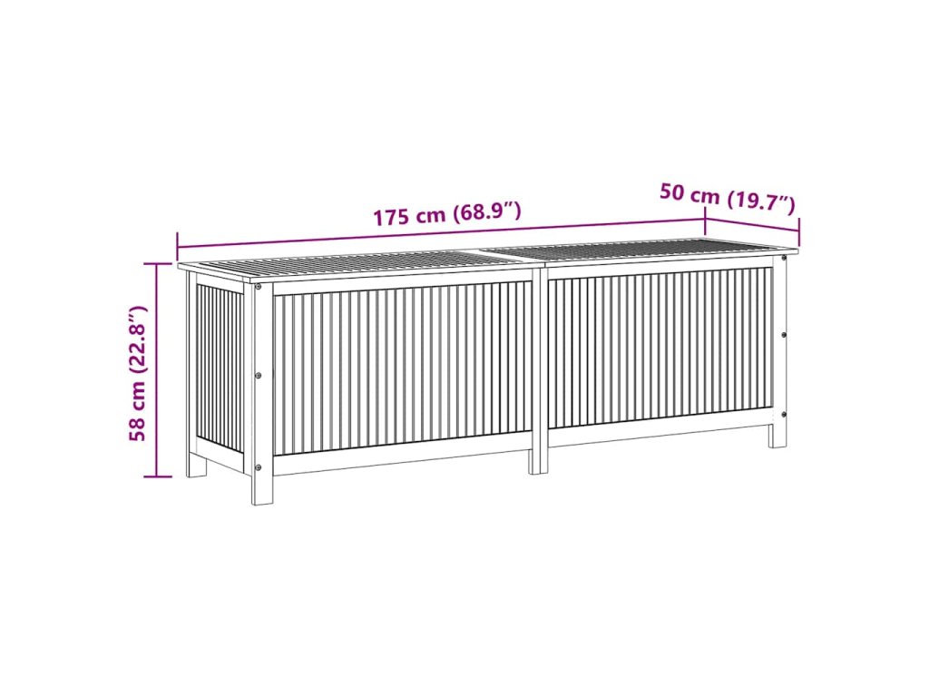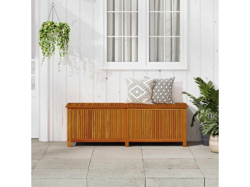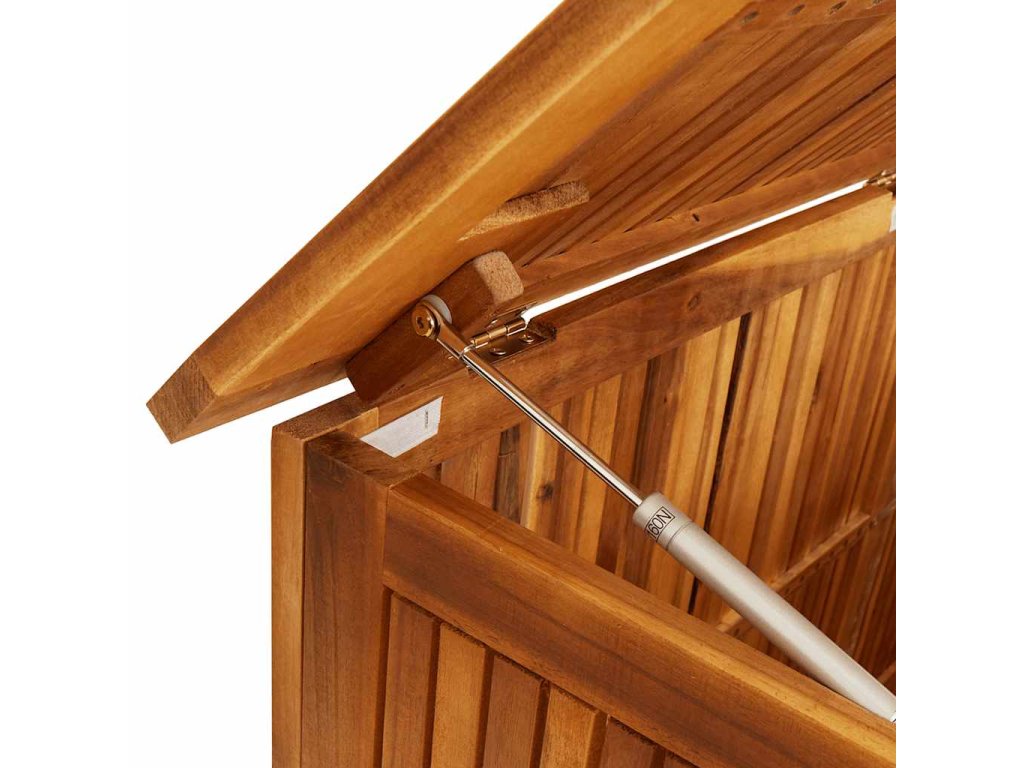 Box na vankúše je vyrobený z akáciového masívu s olejovým náterom a v jeho vnútri sa nachádza vodovzdorné vrecko na zips, takže je odolný, mimoriadne trvácny a vhodný na používanie v exteriéri. Poskytuje ideálne miesto na odkladanie podložiek, vankúšov, extra prikrývok či iných domácich alebo záhradných potrieb, ktoré tak budete mať prehľadne uložené a vždy poruke.