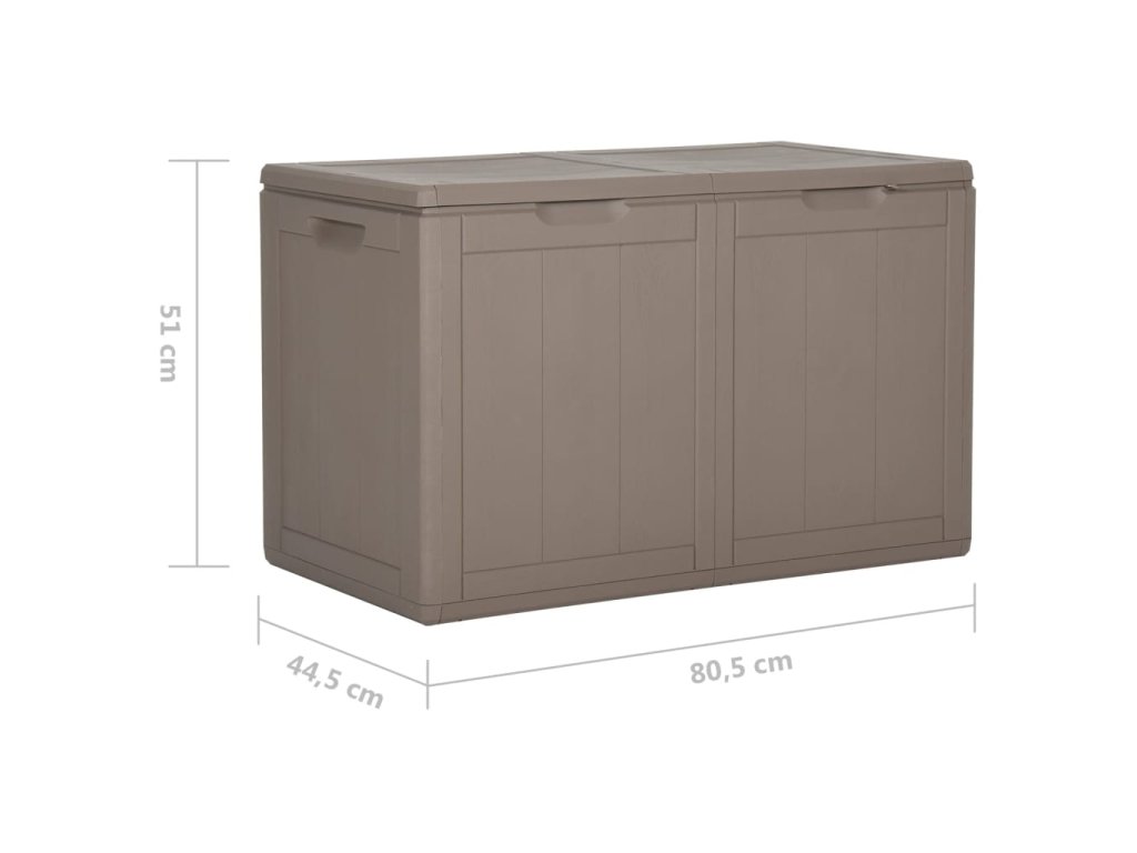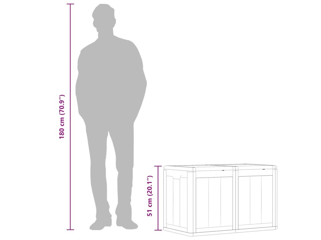 Úložná truhlica je vyrobená zo 100% PP materiálu, takže je odolná voči poveternostným vplyvom, UV žiareniu, je ľahká a prenosná. Záhradný úložný box má nenápadný, ale nadčasový dizajn a dokonale sa hodí k vášmu interiéru a exteriéru. Okrem toho záhradný úložný box ponúka dostatok úložného priestoru na vankúše, podušky, iné predmety do domácnosti alebo záhrady, ktoré chcete mať na dosah.