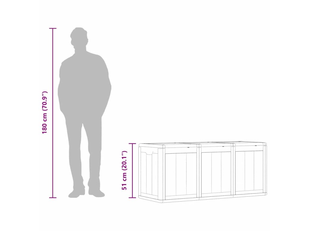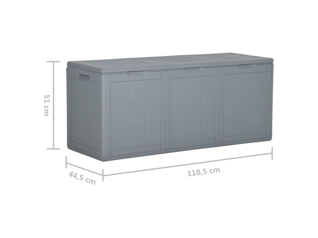 Úložná truhlica je vyrobená zo 100% PP materiálu, takže je odolná voči poveternostným vplyvom, UV žiareniu, je ľahká a prenosná. Záhradný úložný box má nenápadný, ale nadčasový dizajn a dokonale sa hodí k vášmu interiéru a exteriéru. Okrem toho záhradný úložný box ponúka dostatok úložného priestoru na vankúše, podušky, iné predmety do domácnosti alebo záhrady, ktoré chcete mať na dosah.