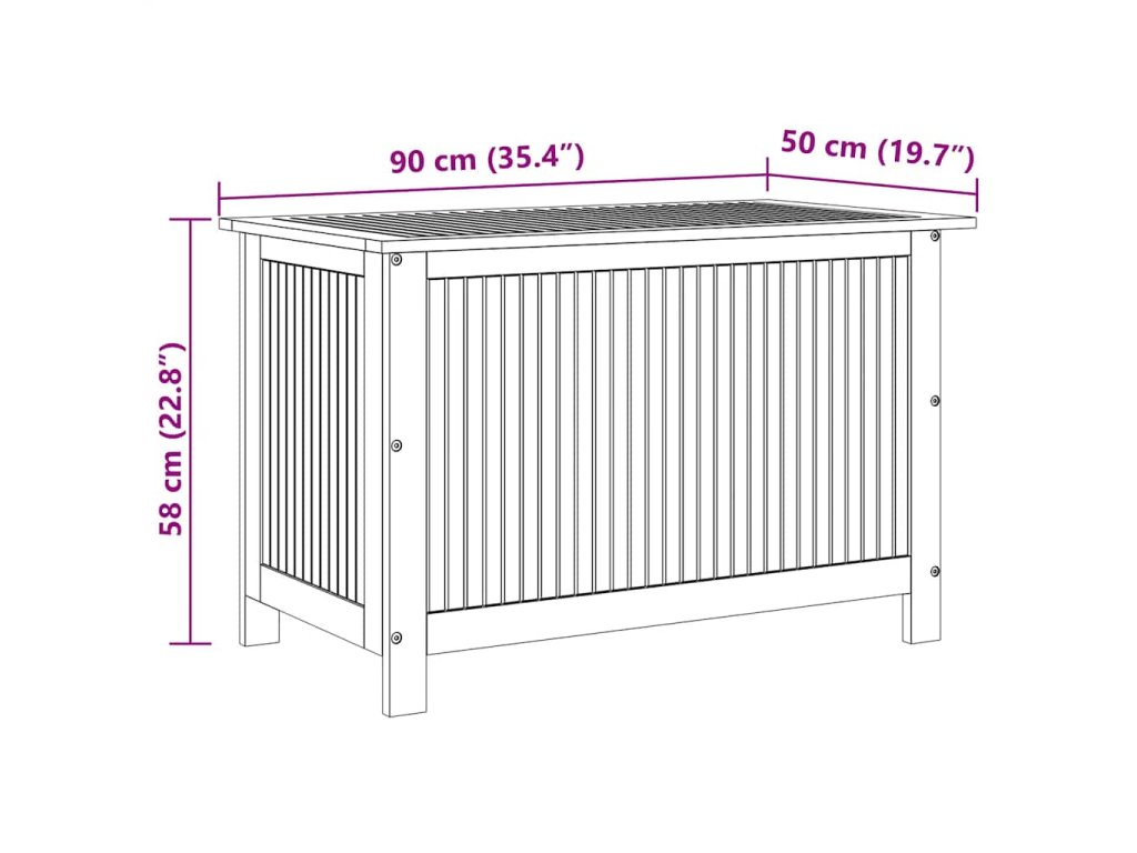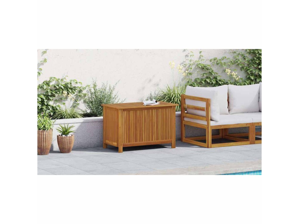 Úložná lavica je vyrobená z akáciového masívu s olejovým náterom, vďaka čomu je odolná, veľmi trvácna a vhodná na používanie v exteriéri. Úložná truhlica poskytuje množstvo priestoru na odkladanie rôznych domácich alebo záhradných predmetov, ktoré potrebujete mať prehľadne uložené a na dosah ruky.