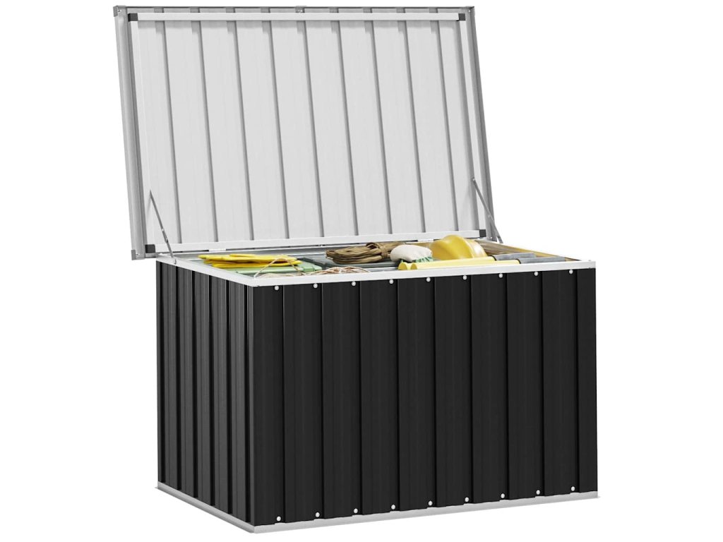 - Veľa úložného priestoru: Priestranný záhradný box poskytuje dostatok miesta na uloženie vankúšov, prikrývok, diek a iných predmetov.