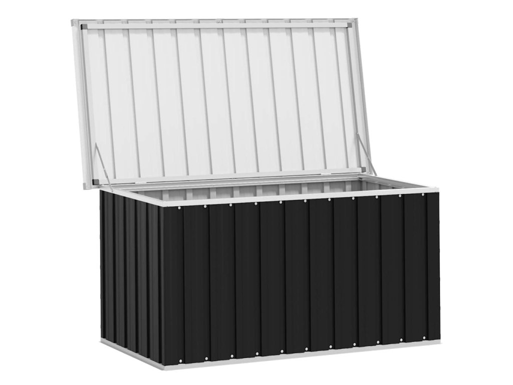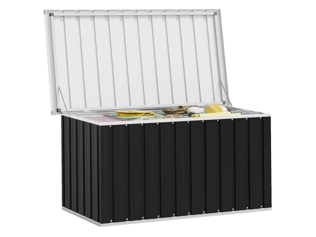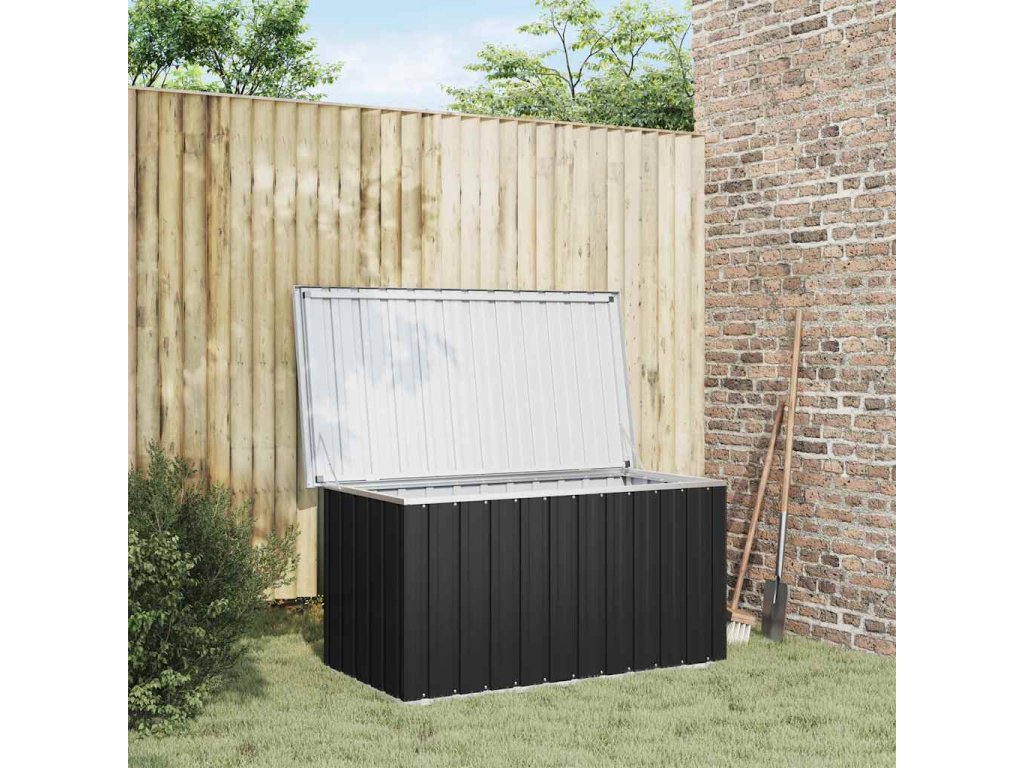 Priestranný záhradný box je vynikajúci na uskladnenie vankúšov, prikrývok, prikrývok a iných predmetov. Vďaka svojej pevnej konštrukcii sa dá použiť aj ako box na náradie. Úložný box je vyrobený z pevnej pozinkovanej ocele, ktorá je vhodná na vnútorné aj vonkajšie použitie. Záhradný úložný box má decentný, no nadčasový dizajn, ktorý sa hodí do každého interiéru.