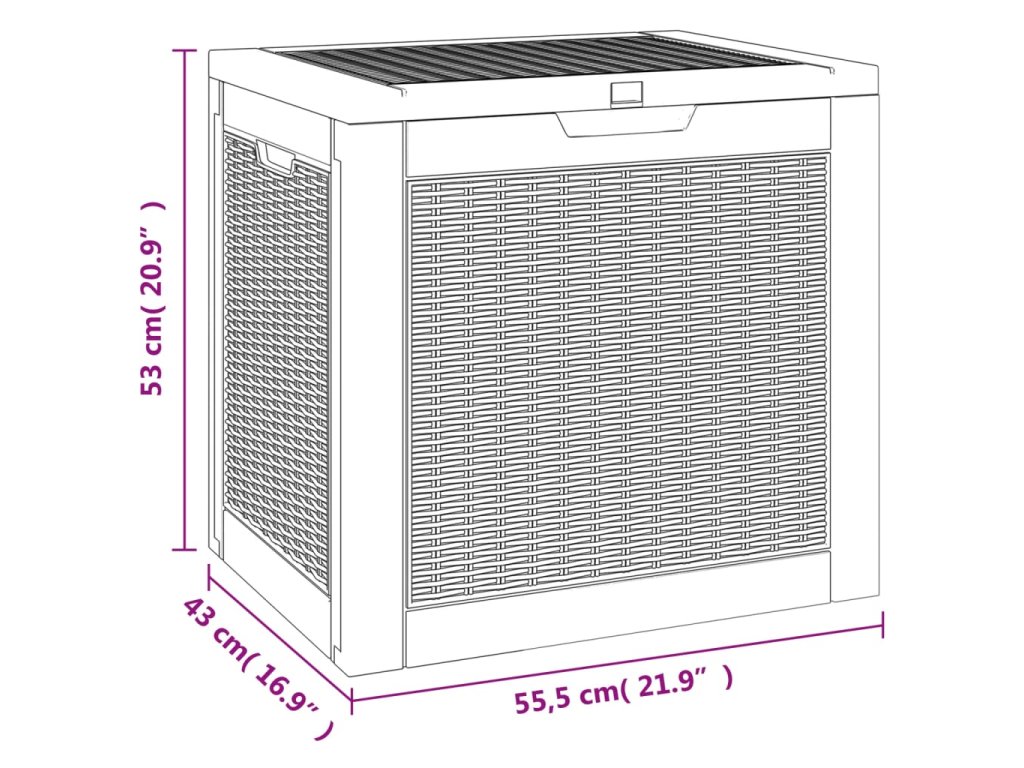 - Veľký úložný priestor: Box má veľký objem, až 118 l, vďaka čomu je ideálny na uloženie veľkých predmetov, ako je záhradné náradie, vankúše na terasový nábytok a hračky do bazéna.
