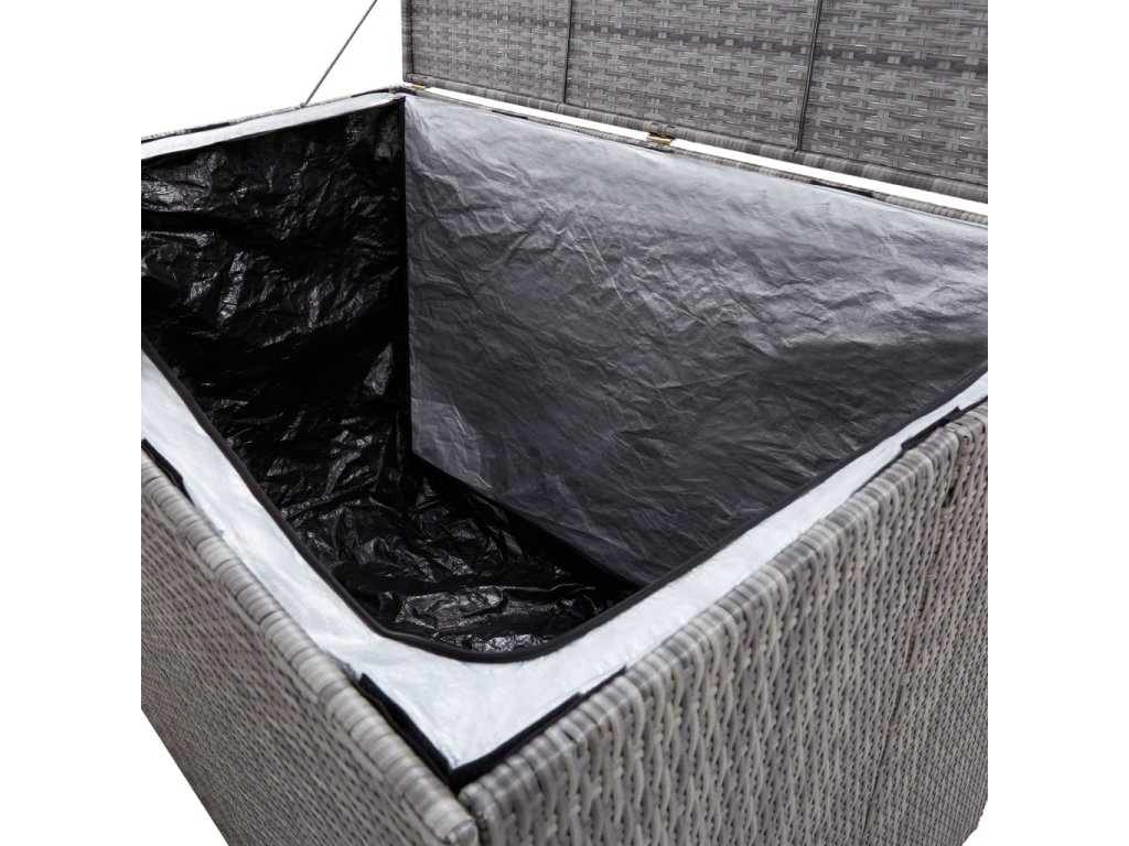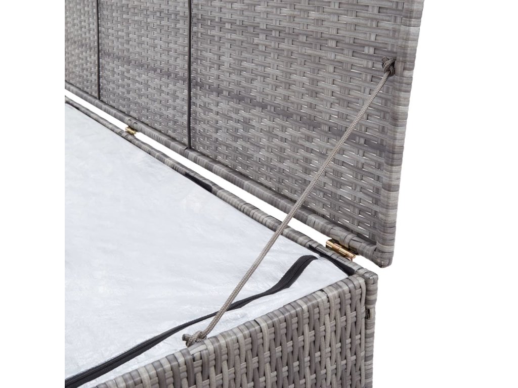 Vďaka PE ratanu, ktorý je odolný voči poveternostným vplyvom, sa skladovacia truhlica ľahko čistí, je odolná a vhodná do exteriéru aj interiéru. Záhradný úložný box má pevný oceľový rám s práškovou povrchovou úpravou, ktorý je veľmi trvácny. Podšívka s uzatváraním na zips sa postará o to, aby odložené veci nenavlhli. Úložná truhlica má moderný dizajn, ktorý sa bude hodiť do každého interiéru aj exteriéru.