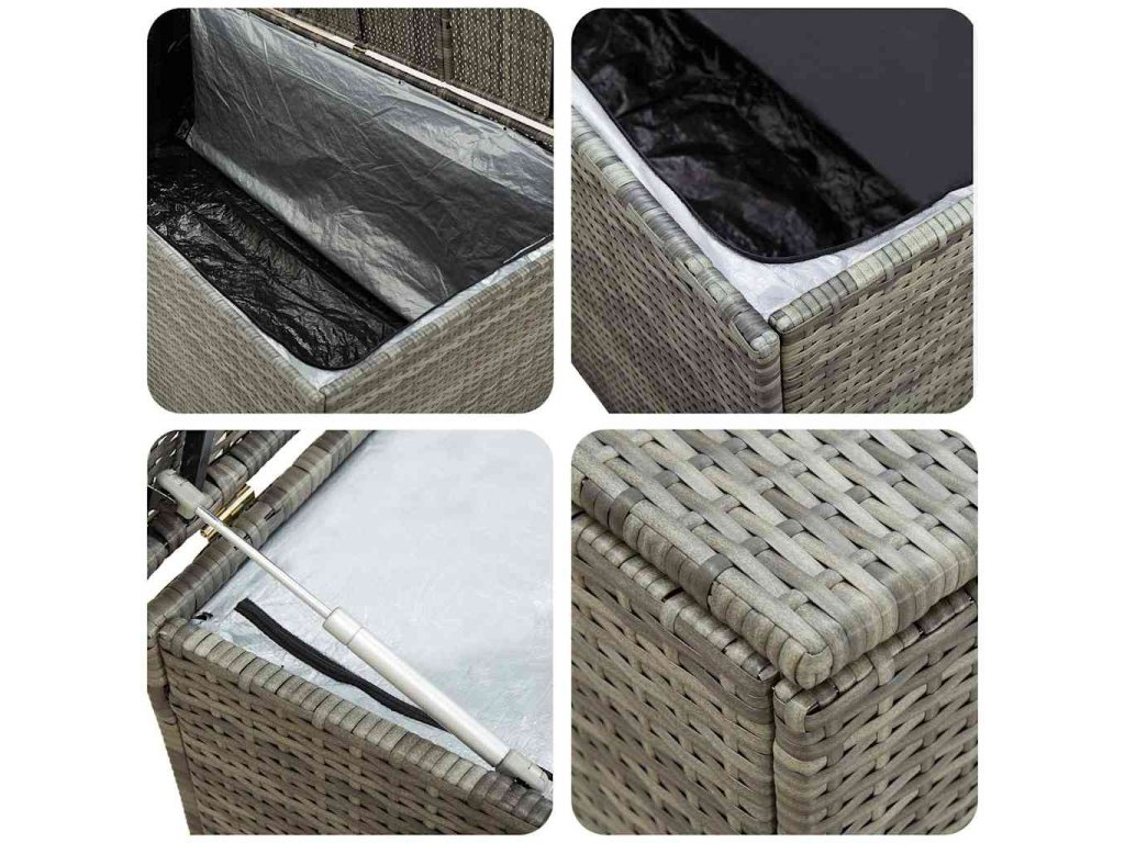- Dostatok úložného priestoru: Vďaka priestrannej truhlici poskytuje box dostatok priestoru na odkladanie záhradných potrieb, ako sú podložky na nábytok, vankúše, deky a záhradné náradie.