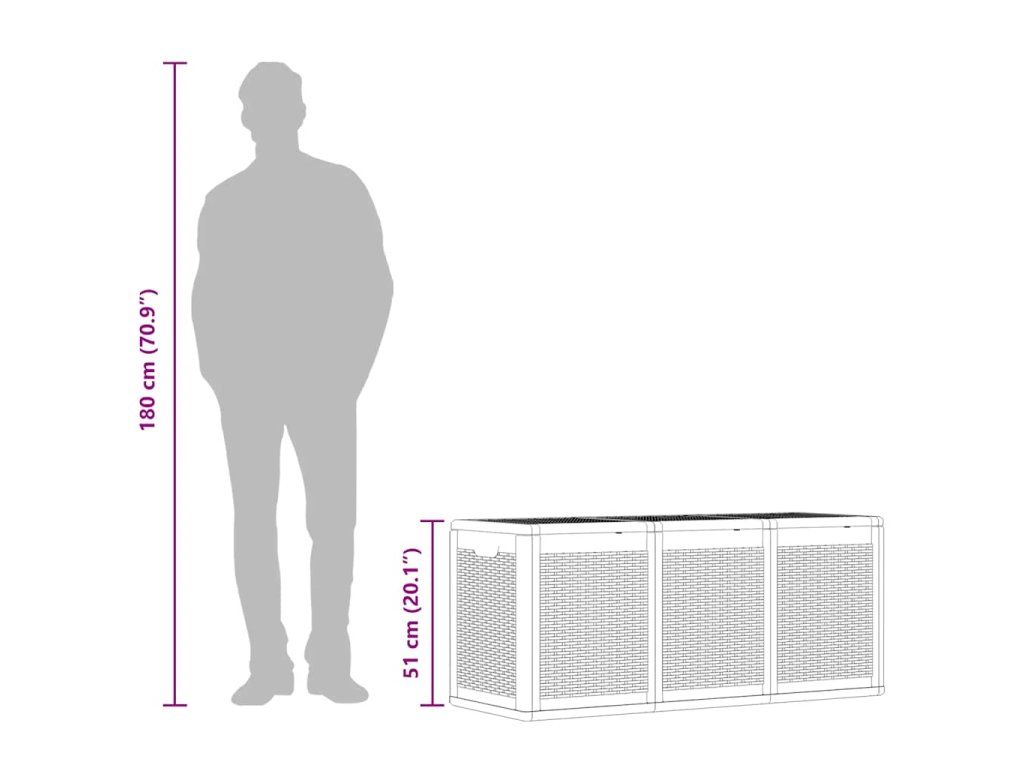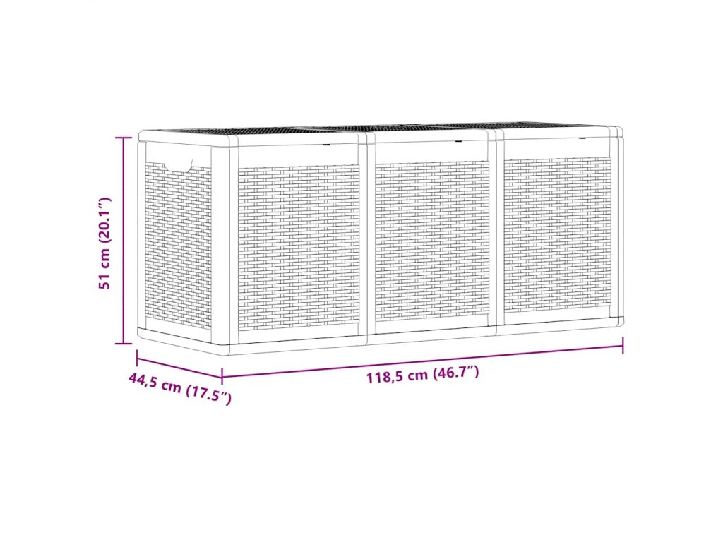 - Dostatok úložného priestoru: Úložný box ponúka dostatok úložného priestoru na vankúše a iné domáce alebo záhradné predmety.