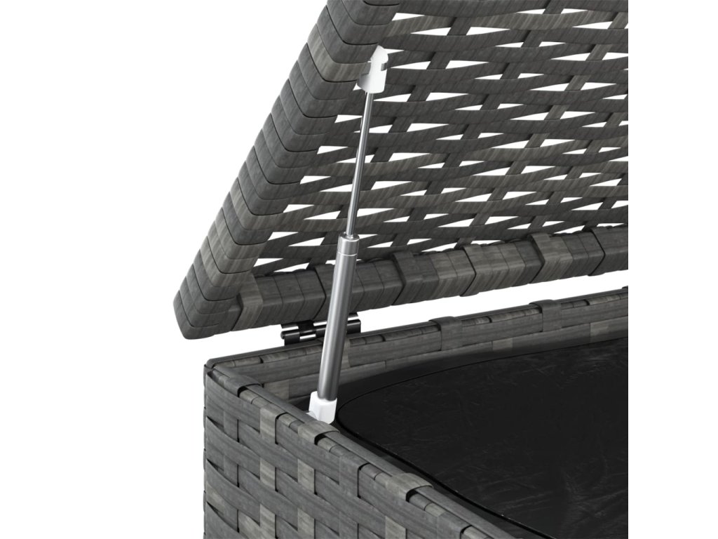 Tento záhradný úložný box má pevný oceľový rám s práškovaným nástrekom, ktorý je vysoko odolný. Vďaka PE ratanu odolnému voči poveternostným vplyvom sa ľahko čistí, je odolný a vhodný na vonkajšie aj vnútorné použitie. Vnútorná PE vodeodolná taška s krytom a zipsom tiež ochráni vaše veci pred vlhkosťou. Box na vankúše je navyše vybavený plynovým zdvíhacím mechanizmom, ktorý uľahčuje otváranie a zatváranie a chráni prsty a ruky pred náhodným zatvorením.
