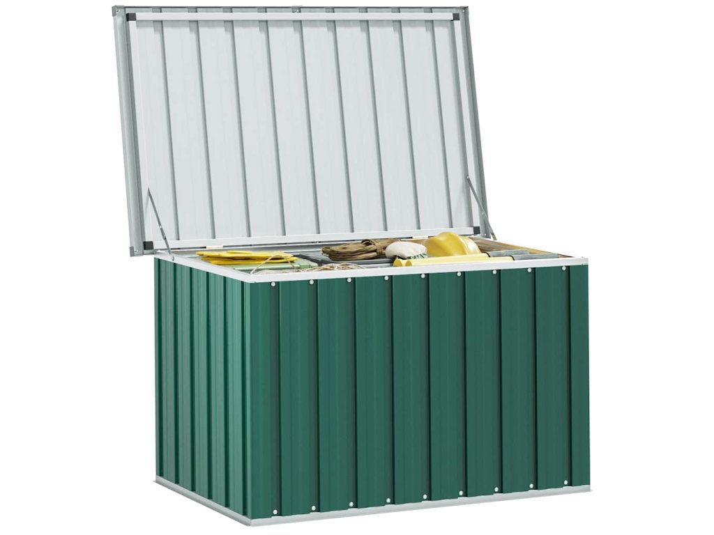 Priestranný záhradný box je vynikajúci na uskladnenie vankúšov, prikrývok, prikrývok a iných predmetov. Vďaka svojej pevnej konštrukcii sa dá použiť aj ako box na náradie. Úložný box je vyrobený z pevnej pozinkovanej ocele, ktorá je vhodná na vnútorné aj vonkajšie použitie. Záhradný úložný box má decentný, no nadčasový dizajn, ktorý sa hodí do každého interiéru.