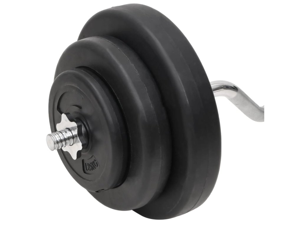 - Odolný materiál: Činka je vyrobená z ocele, čiže pevná a stabilná. Závažie na činku je vyrobené z cementu a pokryté robustným plastom šetrným k podlahe. Nebudú teda vydávať žiadne nepríjemné zvuky.