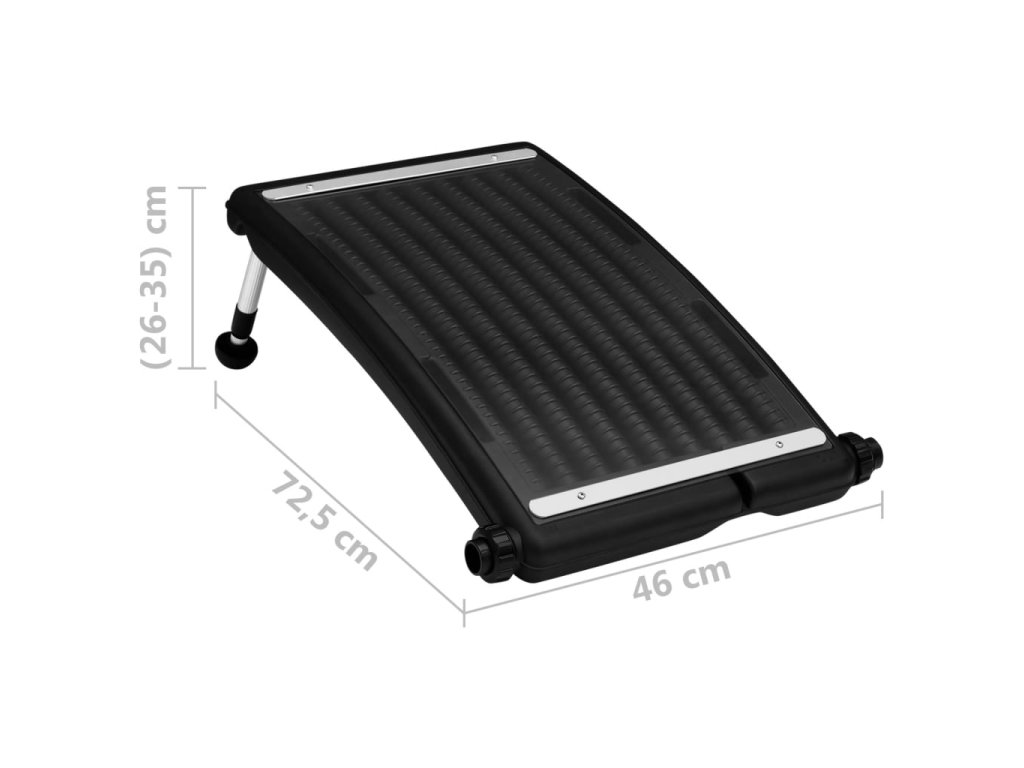 Solárny vyhrievací systém je navrhnutý z materiálov, ktoré odolávajú častému vystaveniu slnku a vonkajším elementom. Ohnuté panely na ohrievanie bazéna a nastaviteľné nohy zaisťujú maximálnu plochu pre zachytenie slnečnej energie, čo má za následok vyššiu účinnosť ohrievania.