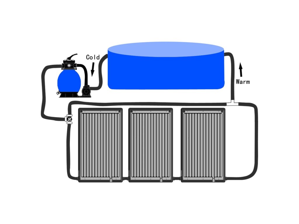Táto sada solárnych ohrevov do bazéna predstavuje ideálny doplnok do nadzemných bazénov. Vodu v bazéne ohrieva pomocou solárnej energie.