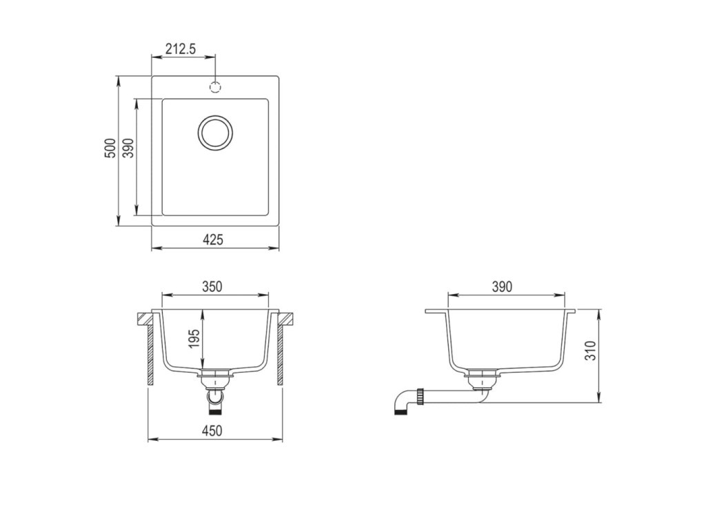 - Minimálne rozmery skrinky pod drez: 450 mm