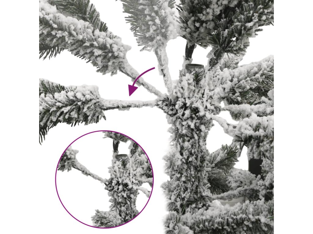 - Snehová výzdoba: Vianočný stromček je ozdobený umelým bielym snehom, ktorý vytvára jedinečnú zimnú atmosféru.
