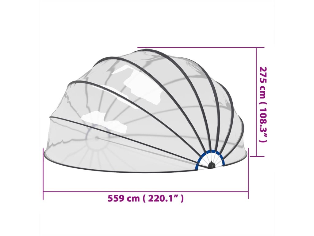 Kryt na bazén je vyrobený z PVC s UPF 30 a má konštrukciu zo sklolaminátu. Poskytne vám vynikajúcu ochranu pred slnkom a dažďom. Postará sa o to, aby sa do bazéna nedostalo lístie, hmyz, prach a ďalšie nečistoty z vonka. V prípade potreby dokáže zabezpečiť rýchlejší ohrev vody a menší únik tepla v priebehu noci. Prístrešok sa ľahko otvára vďaka jedinečnému mechanizmu s pántmi. Kryt je priehľadný, a tak vám neunikne žiadne dianie okolo bazéna. Zastrešenie bazénu sa dodáva spolu s hrotmi a hákovými klincami do zeme, pomocou ktorých ho môžete pevne ukotviť k zemi. A tak sa nemusíte obávať, že vietor toto zastrešenie bazénu odfúkne.