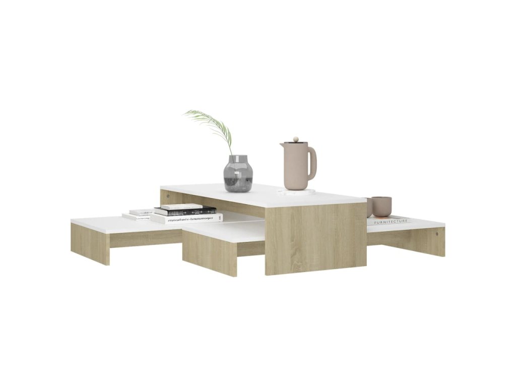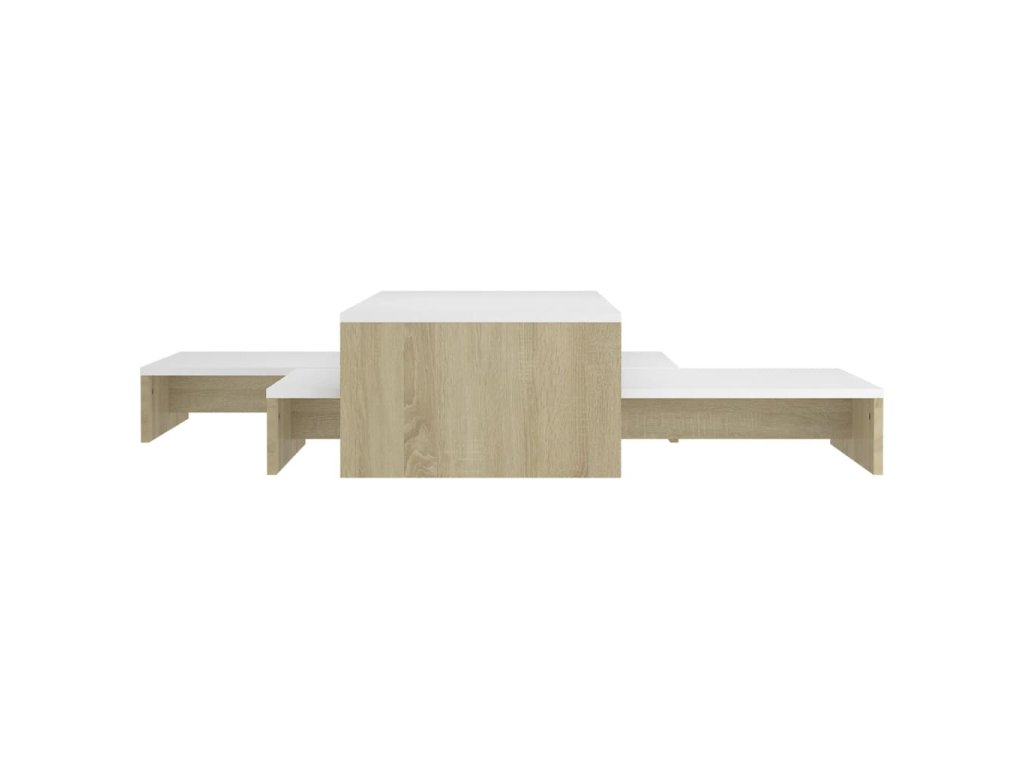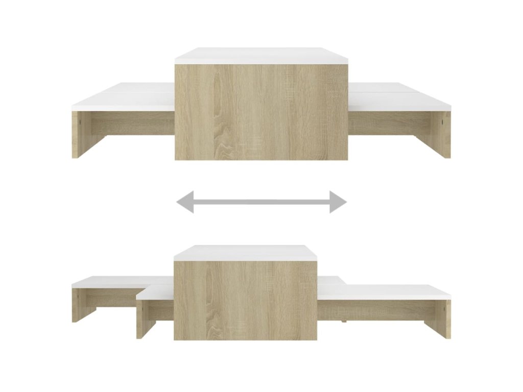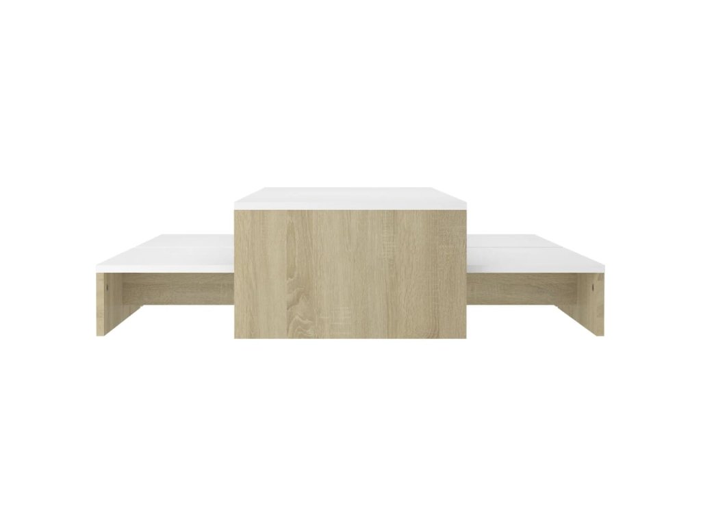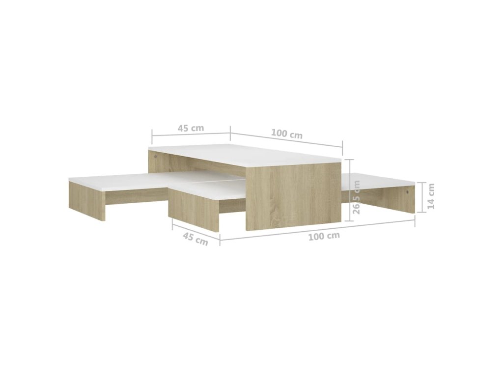 Táto sada príručných stolíkov je vyrobená z kvalitného kompozitného dreva, vďaka čomu je robustná a trvácna. Na široké stolové dosky si môžete položiť nápoje, časopisy či iné potreby. Stolíky k pohovke poslúžia aj ako odkladacie stolíky či stolíky na telefón. Môžete ich využívať samostatne alebo ich poukladať pod seba, aby nezaberali veľa miesta. Keď stolíky ku gauču zasuniete pod seba, nižšie stolíky sa premenia na praktický skrytý úložný priestor, kam si môžete odkladať rôzne veci, ktoré chcete mať poruke. Sada príručných stolíkov sa dá ľahko očistiť navlhčenou handričkou.