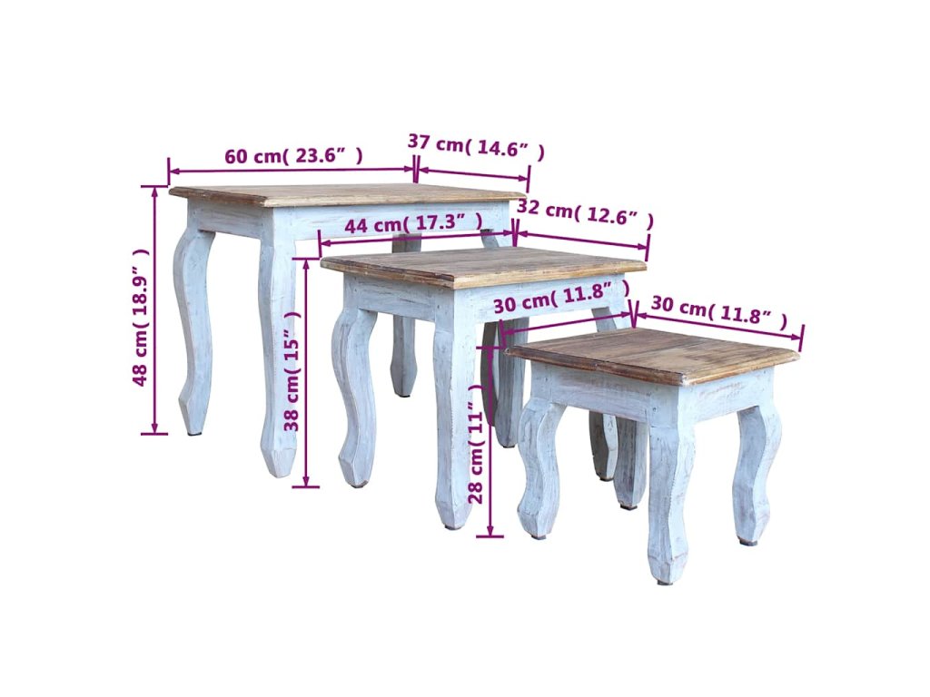 Každý krok procesu výroby je vykonávaný s tou najväčšou starostlivosťou. Balenie obsahuje 3 stohovateľné stolíky rôznych rozmerov.
