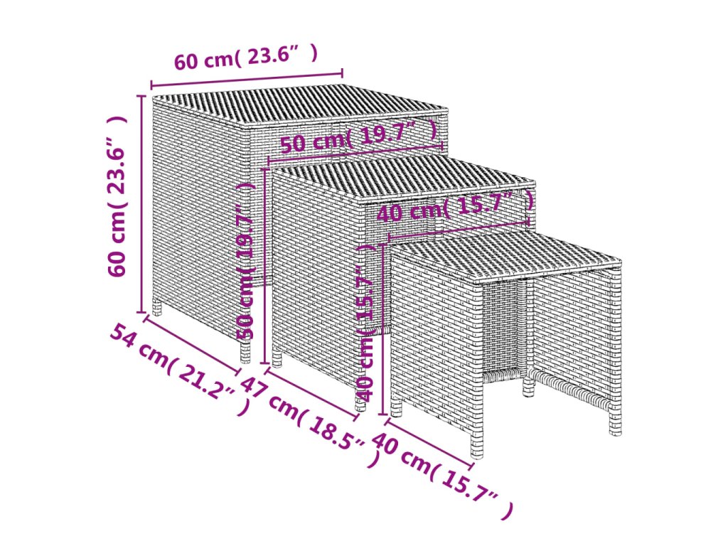 - Rozmery veľkého stolíka: 60 x 54 x 60 cm (D x Š x V)
