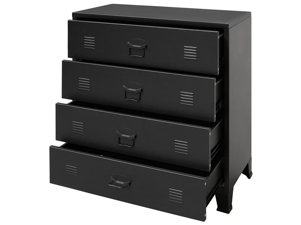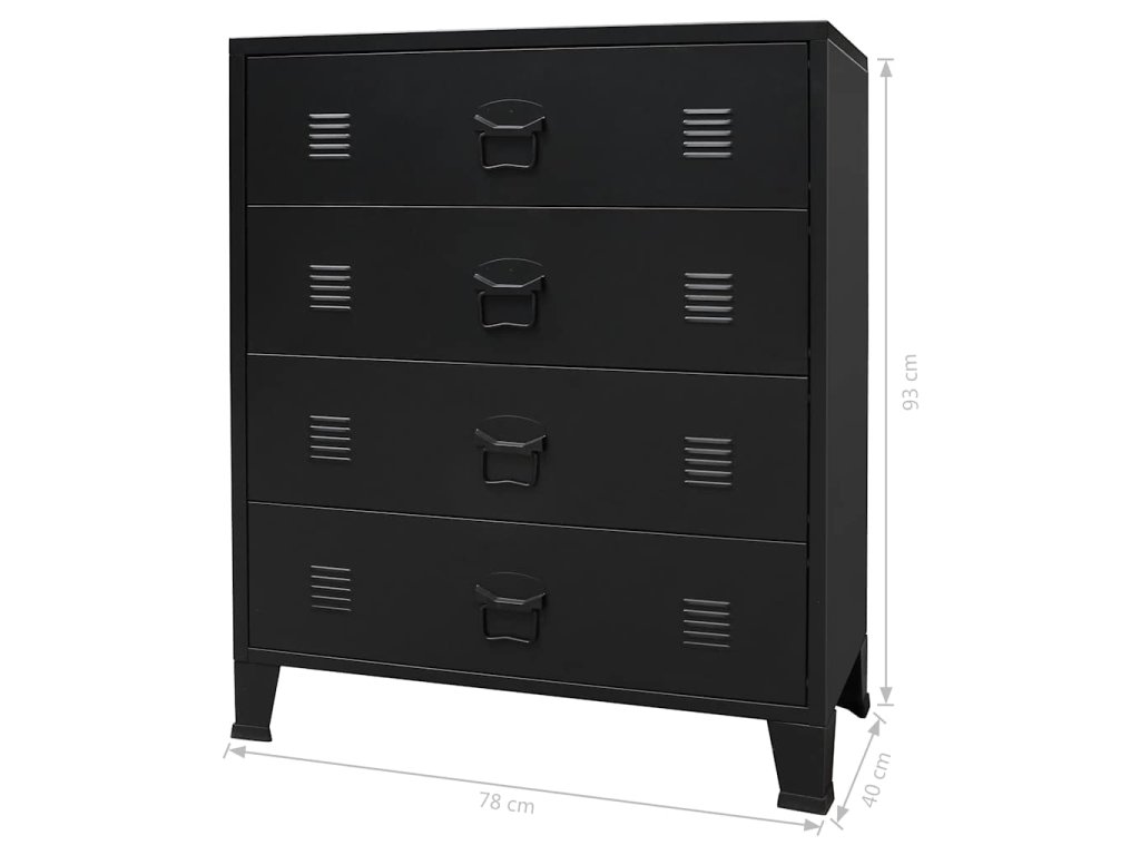 Táto skrinka má 4 veľké zásuvky, ktoré poskytujú dostatok priestoru na uloženie diek, kníh, časopisov a iných položiek, ktoré chcete mať na dosah ruky, ale skryté z dohľadu. Komoda je vyrobená z plechu, takže je odolná a dobre sa čistí. Montáž je jednoduchá.