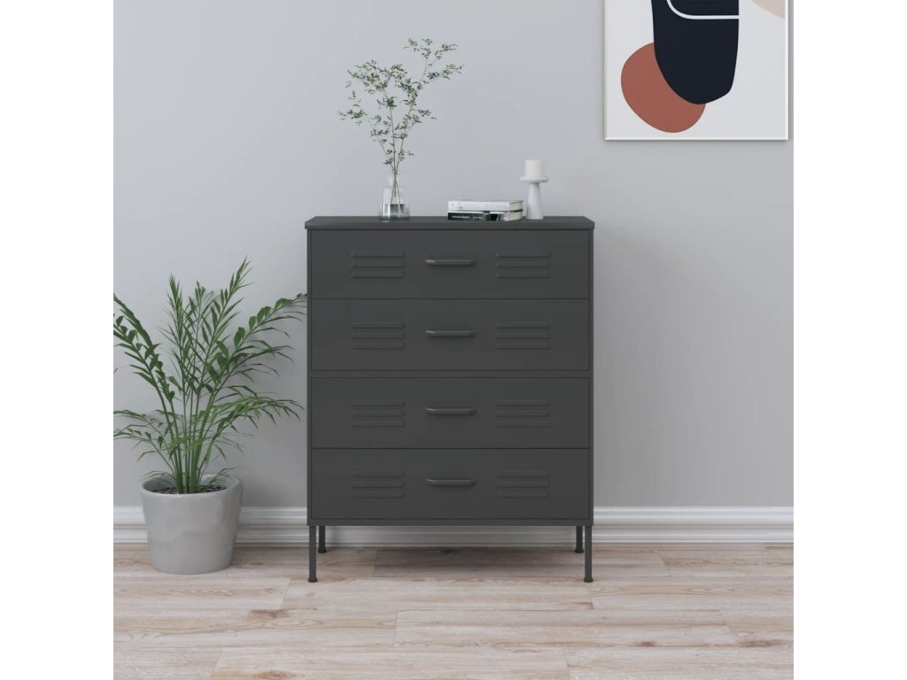 Táto bočná skrinka s oceľovou konštrukciou je pevná a odolná. Na spodnej strane sú vyrovnávače, pomocou ktorých si výšku nastavíte podľa svojich potrieb. Zásuvky sa dajú úplne vysunúť a sú ideálne na uloženie všetkých druhov menších predmetov, ktoré chcete mať na dosah ruky. Zásuvky s guľôčkovými ložiskami zaisťujú plynulé otváranie a zatváranie aj pri zvýšenej záťaži.