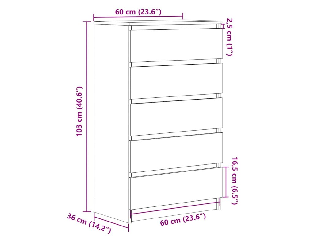 - Dostatočný úložný priestor: Úložná skrinka má 5 zásuviek. Priestranné zásuvky vám umožnia mať vo veciach poriadok.