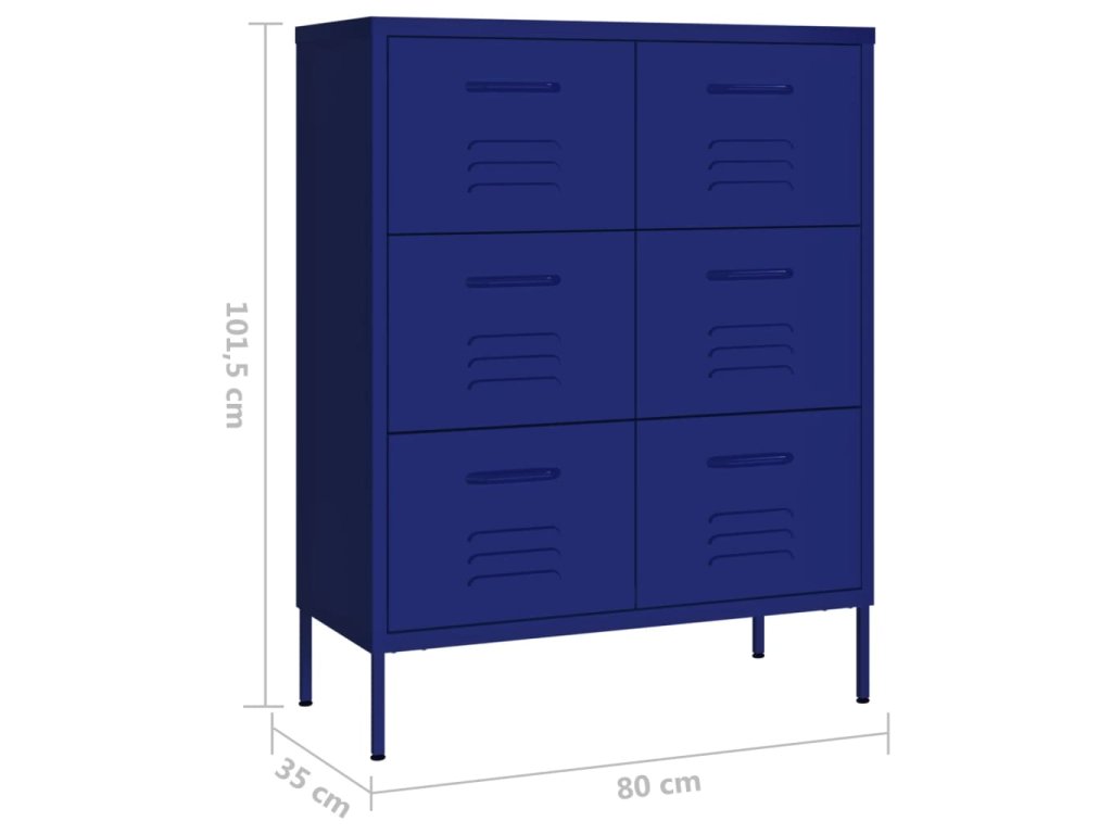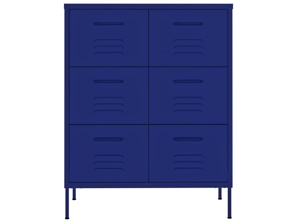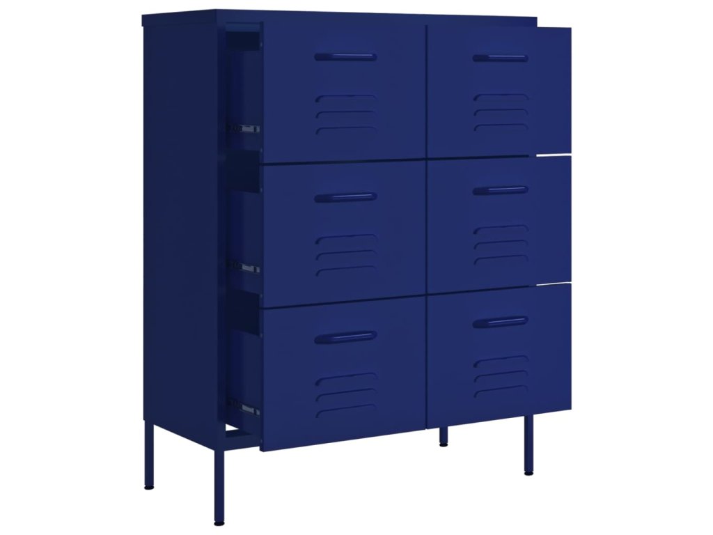 Táto úložná skriňa je vyrobená z ocele, vďaka čomu je pevná a stabilná. Skriňa má 6 zásuviek, ktoré poskytujú dostatok úložného priestoru na usporiadanie a prehľadné uloženie DVD, multimediálnych zariadení, kníh a drobných nevyhnutných predmetov. Zásuvky s 3 časťami s guľôčkovými ložiskami zabezpečujú hladké otváranie a zatváranie aj pri zvýšenej záťaži. Tieto zásuvky sa dajú úplne vysunúť. Okrem toho sa skrinka ľahko čistí vlhkou handričkou.