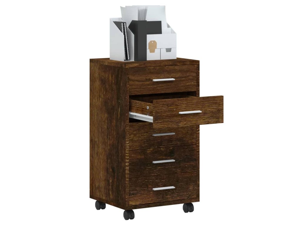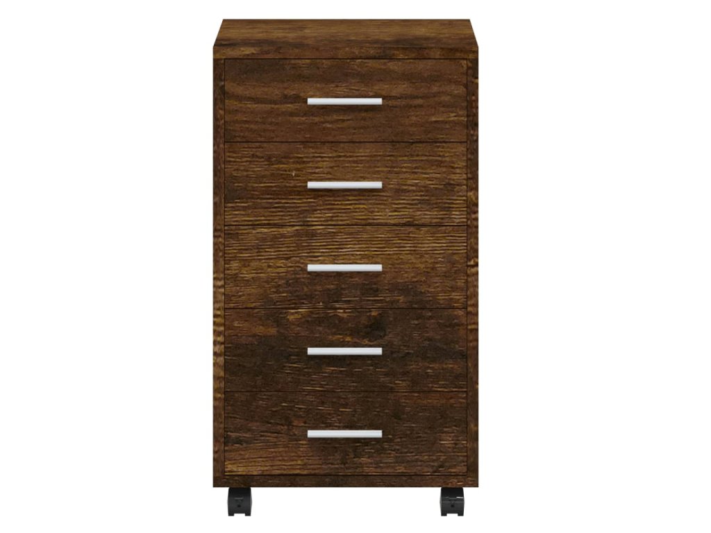 - Dostatok úložného priestoru: Skrinka má 5 zásuviek, ktoré poskytujú dostatok úložného priestoru na dokumenty, zošity, perá, sponky, kľúče a iné kancelárske potreby.