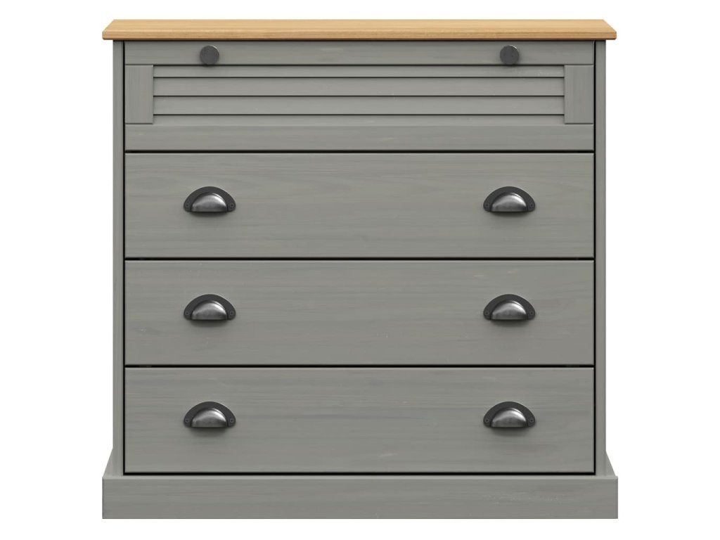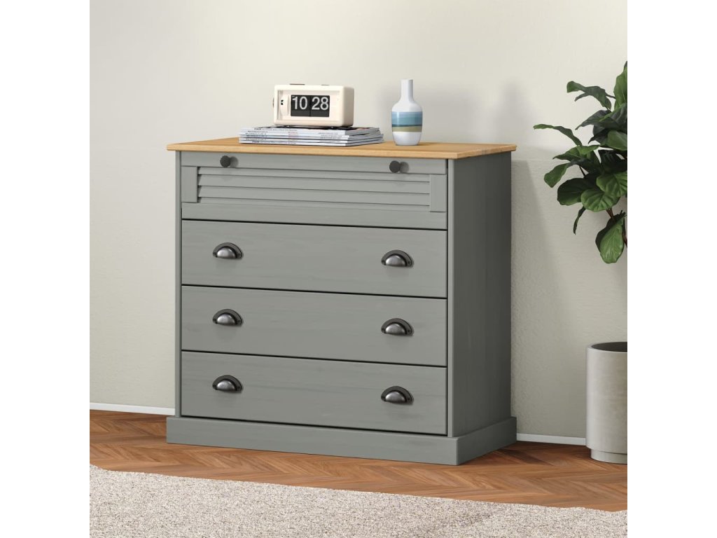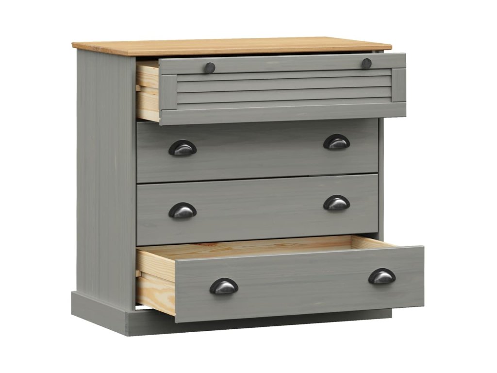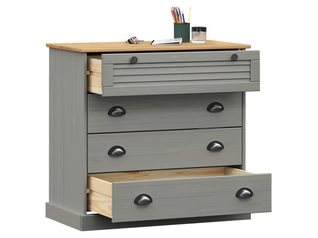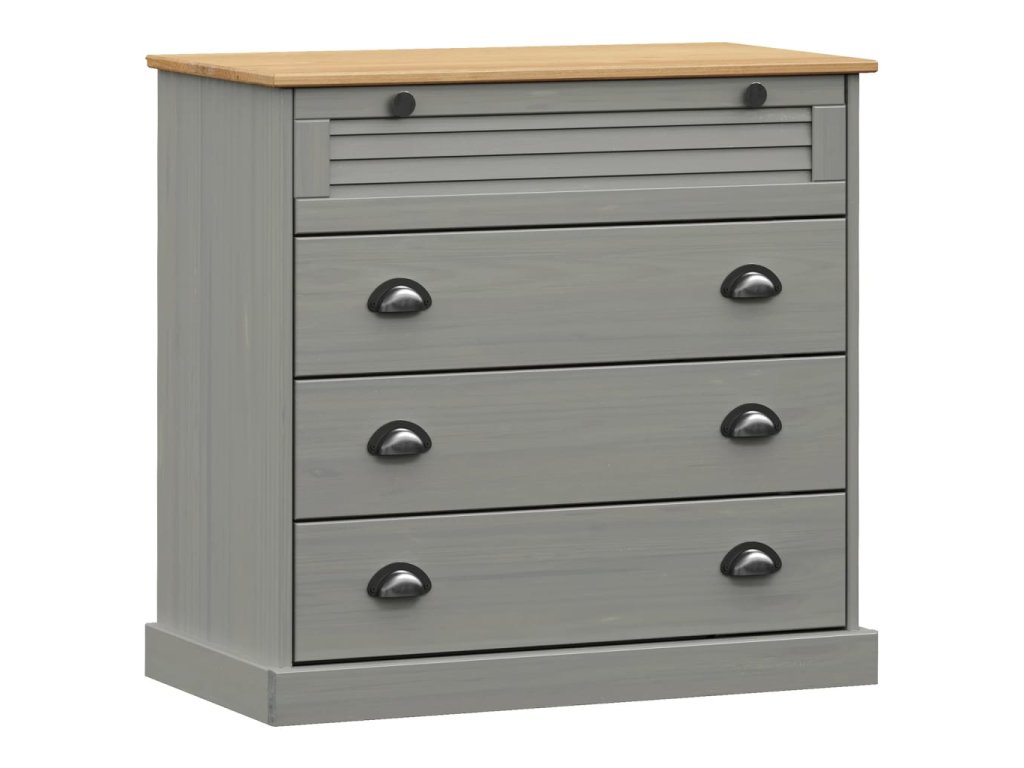 - Borovicový masív: Borovicový masív je krásny prírodný materiál. Borovicové drevo má rovnú kresbu a nachádzajú sa na ňom hrče, ktoré tomuto materiálu dodávajú charakteristický rustikálny vzhľad. Zásuvková skrinka je vyrobená z masívneho borovicového dreva a je odolná a pevná.
