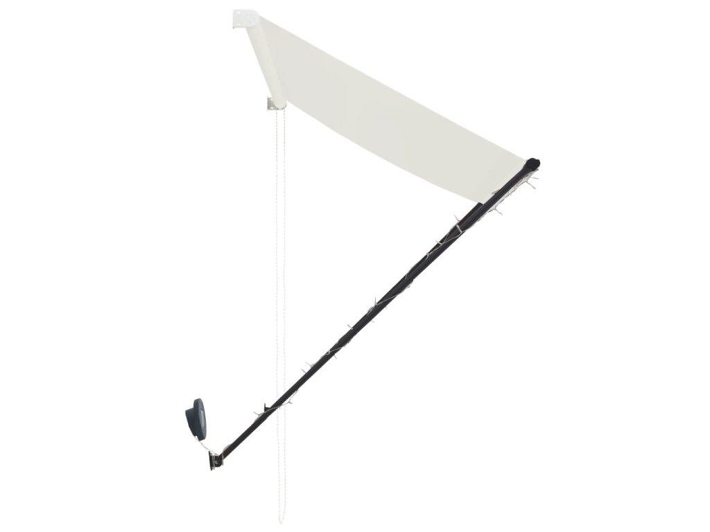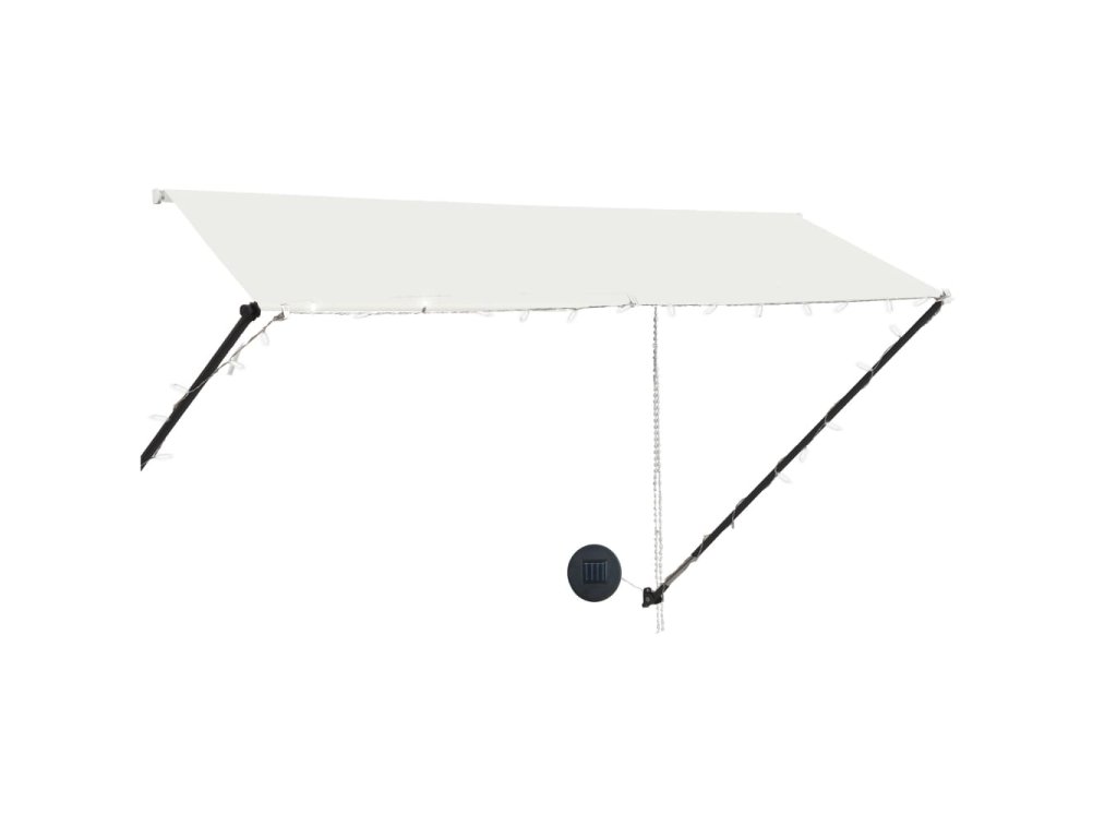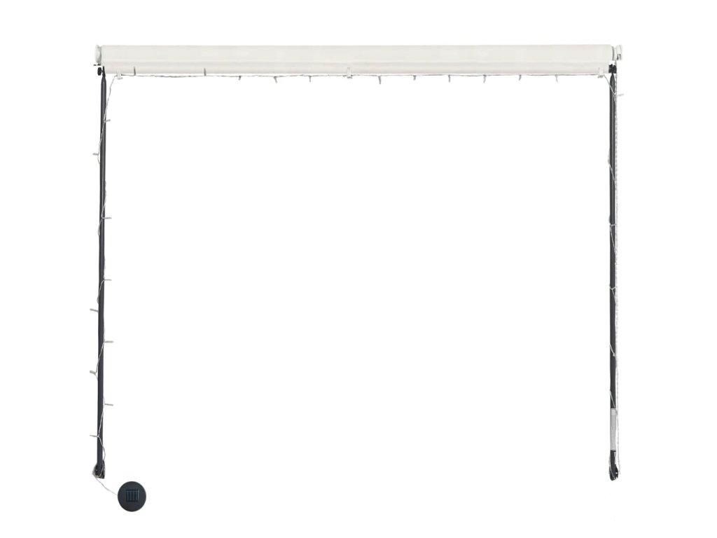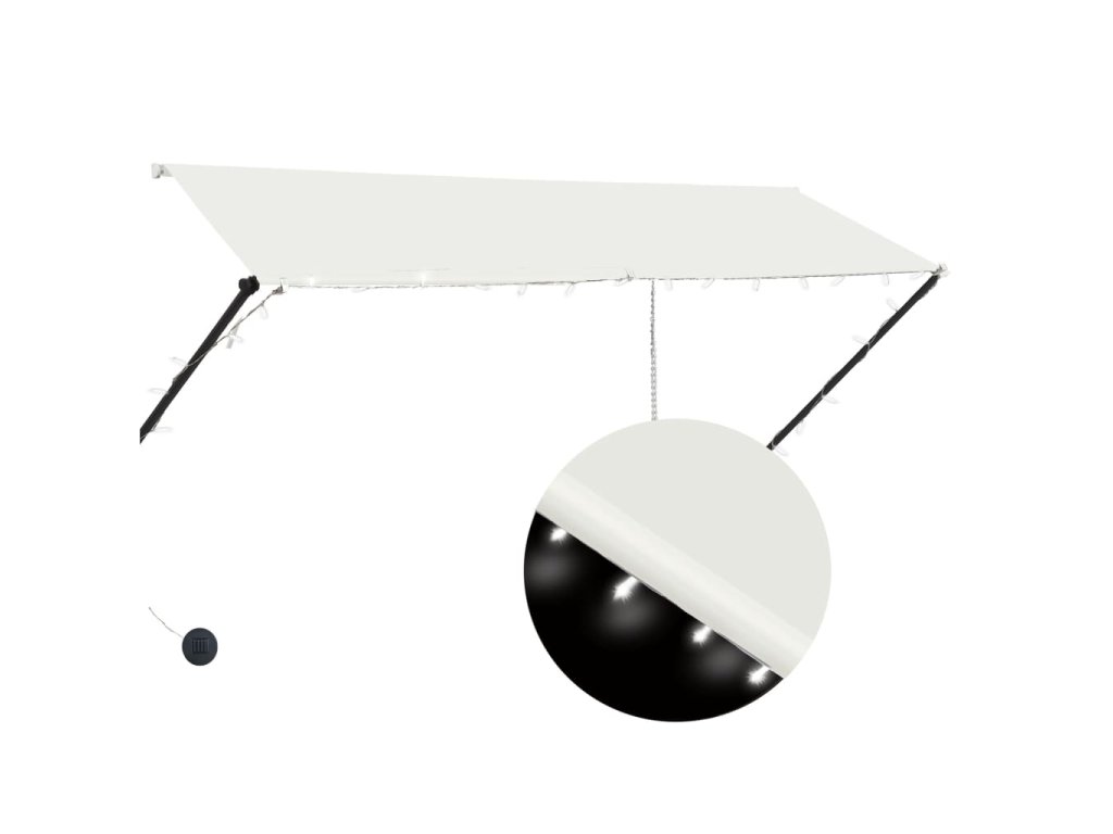 Táto markíza je vodeodolná a odolná voči UV žiareniu a poveternostným vplyvom, pretože je vyrobená z vysokokvalitnej tkaniny s PA povlakom. Odolný oceľový rám zabezpečuje, že je markíza pevná a trvácna. Ľahko čistiteľná polyesterová strieška sa dá odstrániť a očistiť. Tento výrobok môžete v prípade potreby používať nielen ako obyčajnú markízu, ale aj ako kompletný kryt na okno. Vďaka podpornej tyči a reťazi sa dá táto markíza zatiahnuť. Okrem toho sa dá nastaviť jej výška a uhol na lepšie zatienenie. Solárne napájané LED svetlá poskytujú úsporné osvetlenie v noci.
