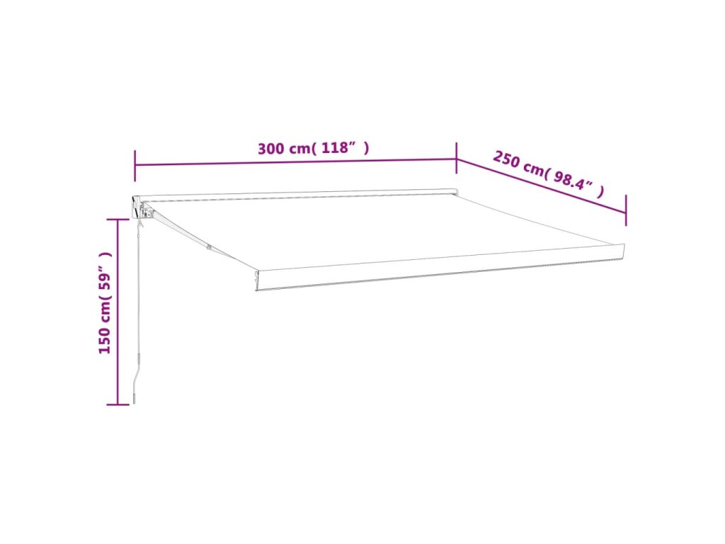 - Odolný materiál: Rám markízy je vyrobený z hliníka s práškovým nástrekom, ktorý je robustný a odolný. Látka s PU povrchovou úpravou je UV odolná. Vašu rodinu alebo hostí ochráni pred UV lúčmi a oslňujúcim slnečným žiarením.