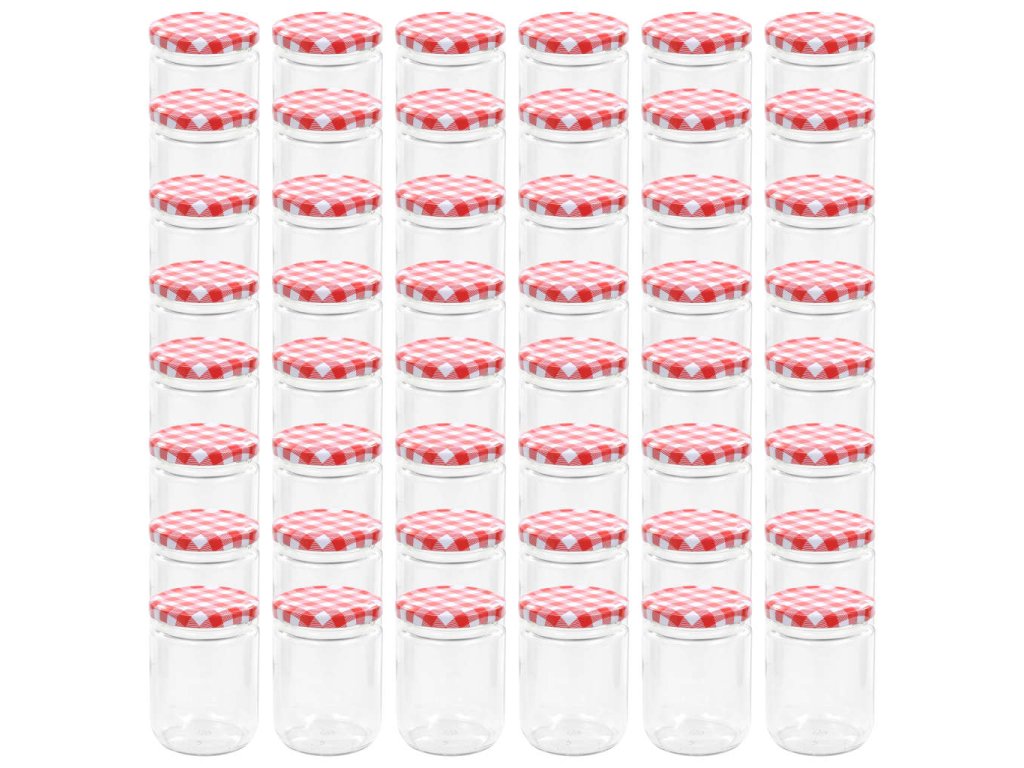 Tieto nádoby na džem sú vyrobené z priehľadného skla a majú jednoduchý a čistý vzhľad, vďaka čomu ich môžete ľahko skontrolovať a rozlíšiť. Široké hrdlo vám umožní ľahko a rýchlo ukladať alebo vyberať zaváraniny. Tieto sklenené nádoby majú červeno-biele viečka, ktoré dobre tesnia a zaistia, že vaše zaváraniny zostanú dlhú dobu čerstvé.