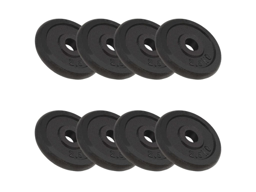 Táto sada pozostáva z 8 závaží. Každé závažie má hmotnosť 2,5 kg. Sada je ideálna na posilnenie a tvarovanie svalov, keď sa použije spolu s tyčou jednoručnej činky, na barbell alebo ohnutou vzpieračskou tyčou s priemerom 30 mm. Súprava je skvelá na použitie doma alebo v posilňovni.