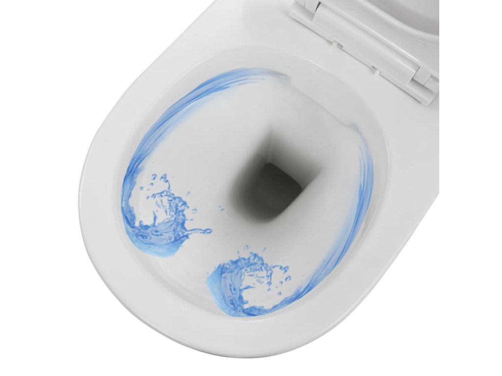 Táto toaleta s bezokrajovým splachovaním má obzvlášť odolný a ľahko udržiavateľný keramický povrch, ktorý zjednodušuje čistenie a zaručuje dlhé roky používania. Vodný kameň a usadeniny sa na odpudzujúci povrch nelepia. Dodávané toaletné sedadlo s automatickým mäkkým uzatváracím mechanizmom zabraňuje pádu toaletného vrchnáka. Montážne príslušenstvo je úplne skryté, čo zaručuje elegantný a hladký vzhľad.