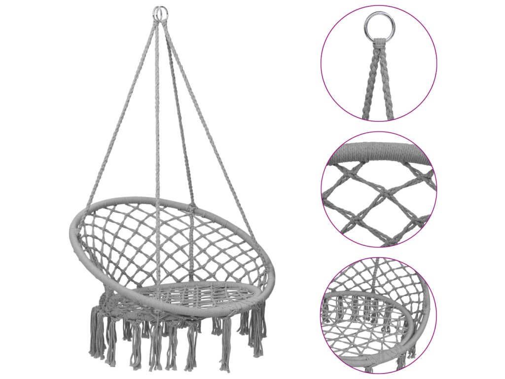 Táto hojdačka na strom má oceľový rám a oderu-vzdornú lanovú sieť, vďaka čomu je pevná a má vysokú nosnosť. Výšku operadla stoličky môžete prispôsobiť tak, aby vám presne sedela. Môžete tiež nastaviť výšku celej hojdačky tak, aby nohy detí zostali na zemi alebo nad ňou, podľa svojich preferencií. Hojdacia stolička poskytuje väčšiu oporu a stabilitu, takže sa vaše deti nebudú musieť držať lana v strachu z pádu. Môžu tak pohodlne relaxovať a odpočívať v pokoji pri hojdaní. Každé nastaviteľné závesné lano hojdačku pevne spája, zatiaľ čo štyri závesné body poskytujú rovnomerné rozloženie sily pre udržanie rovnováhy a zaistenie bezpečnosti. Navyše, strapcový dizajn ju skrášľuje.