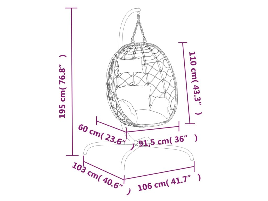 Pohodlne sa usaďte a vychutnajte si chvíle oddychu vo svojom obytnom priestore s týmto fascinujúcim závesným kreslom v tvare vajíčka.