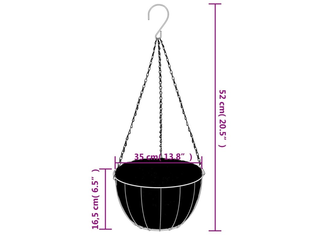 - Pevný rám: Rám závesného kvetináča je vyrobený z ocele s práškovým nástrekom, ktorý je dostatočne pevný na to, aby udržal pôdu s rastlinami.