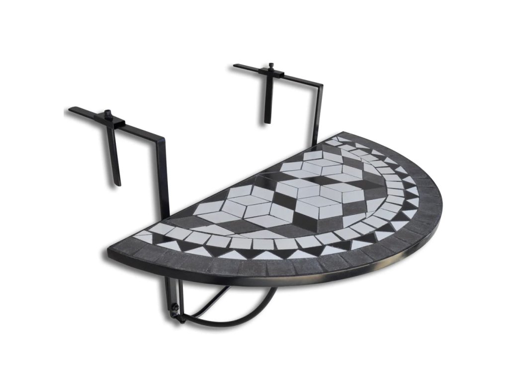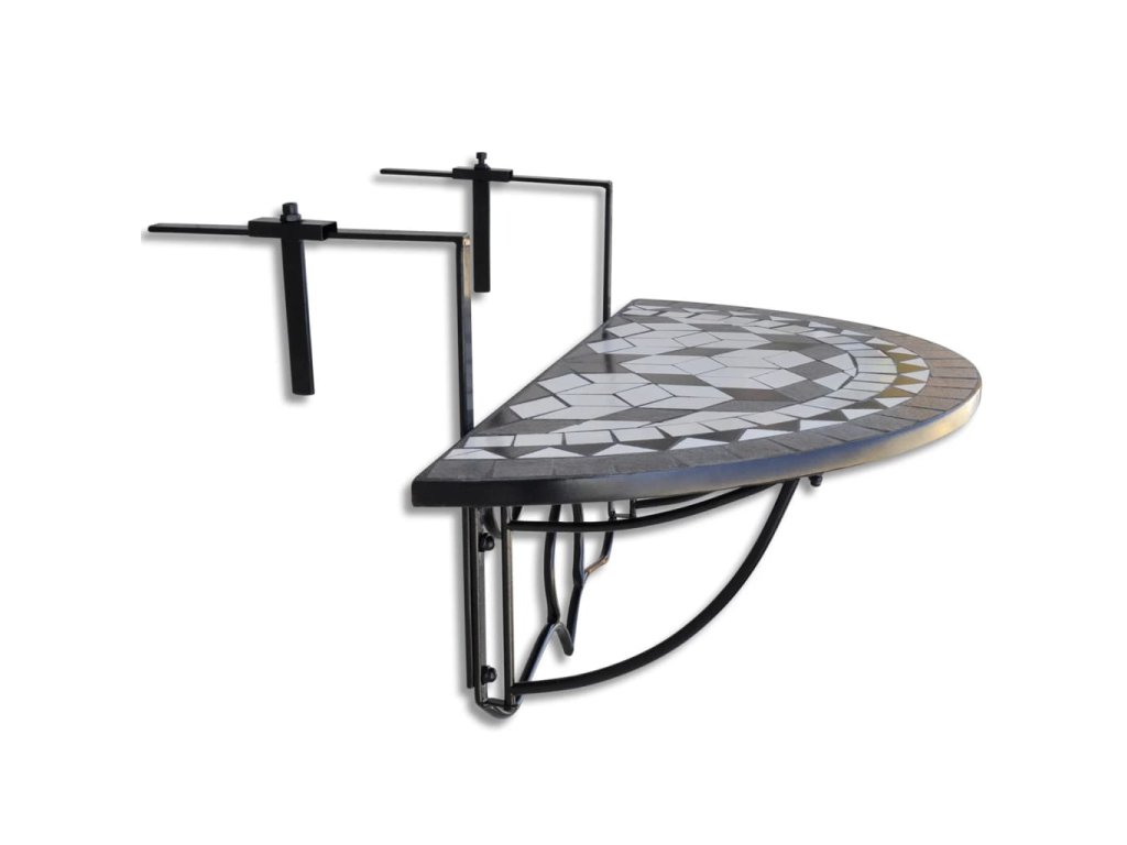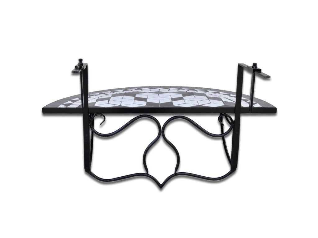 Železný rám stolíku dodáva potrebnú pevnosť a keramická doska v tvare polkruhu sa dá jednoducho očistiť. Stolík na balkón sa dá namontovať na akúkoľvek terasu či balkón so zábradlím so šírkou do 18 cm. Dá sa jednoducho sklopiť, keď sa nepoužíva, aby nezaberal veľa miesta. Upozorňujeme, že nie je vhodné výrobok nechávať vonku v chladnom počasí.