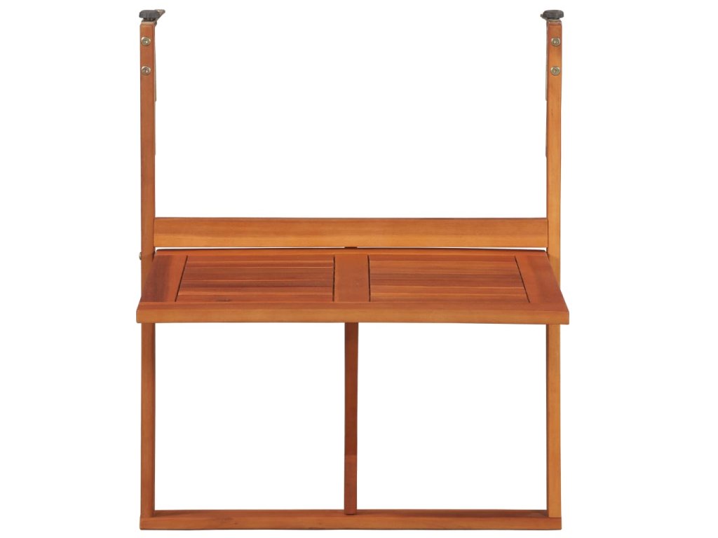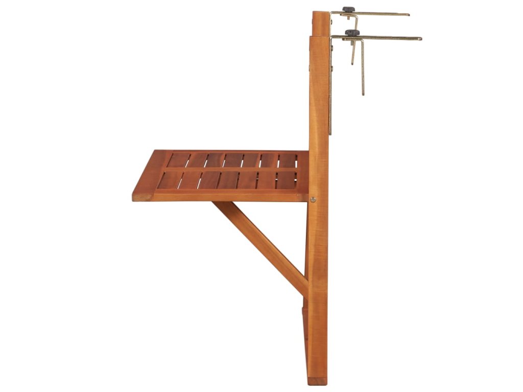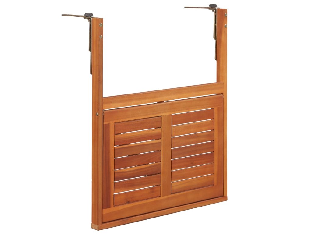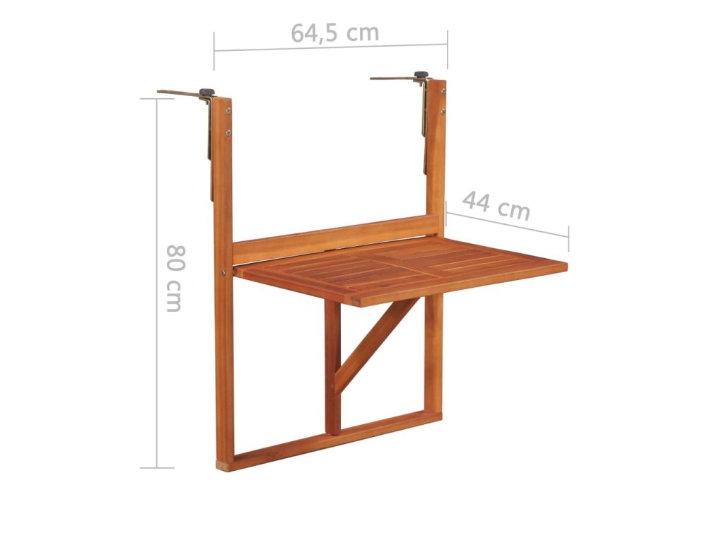 Závesný stolík sa dá pripevniť k akémukoľvek zábradliu. Je vyrobený z akáciového masívu a ošetrený prírodným olejovým náterom, vďaka čomu je trvácny, nevyžaduje si náročnú údržbu a je odolný voči poveternostným vplyvom. Stolík na balkón sa dá sklopiť, aby nezaberal veľa miesta, keď sa nepoužíva. Stolík na terasu sa jednoducho montuje.