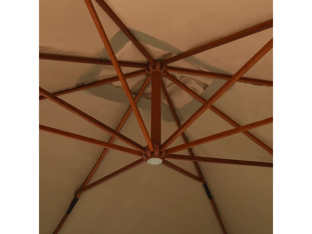 - Stabilný rám: Záhradný slnečník má pevnú krížovú základňu, ktorá zvyšuje jeho stabilitu. Pevná tyč z masívneho tvrdého dreva spolu s 8 trvácnymi rebrami zabezpečí vynikajúcu stabilitu a dlhú životnosť tohto záhradného slnečníka.