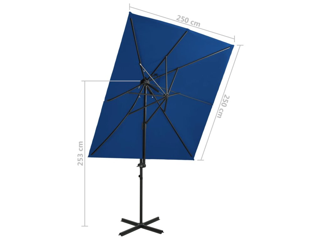 Vrch slnečníka vám poskytne optimálnu ochranu pred slnkom a ľahko sa čistí, pretože je vyrobený z polyesteru odolného voči UV žiareniu a vyblednutiu. Má stabilný krížový podstavec, ktorý mu dodáva stabilitu. Exkluzívny dizajn umožňuje slnečník nakloniť a otáčať o 360 stupňov, aby zablokoval zapadajúce slnko. Vďaka pevnej hliníkovej tyči a 8 rebrám je slnečník veľmi stabilný a trvácny. Tento záhradný slnečník sa dá ľahko otvárať a zatvárať vďaka kľukovému mechanizmu. Dvojitý vrchný kryt navyše umožňuje vetranie.
