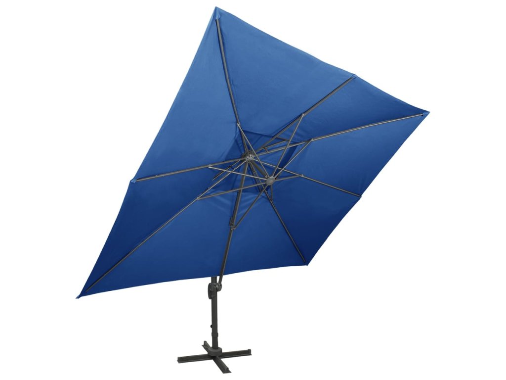 Vrch slnečníka vám poskytne optimálnu ochranu pred slnkom a ľahko sa čistí, pretože je vyrobený z polyesteru odolného voči UV žiareniu a vyblednutiu. Má stabilný krížový podstavec, ktorý mu dodáva stabilitu. Exkluzívny dizajn umožňuje slnečník nakloniť a otáčať o 360 stupňov, aby zablokoval zapadajúce slnko. Vďaka pevnej hliníkovej tyči a 8 rebrám je slnečník veľmi stabilný a trvácny. Tento záhradný slnečník sa dá ľahko otvárať a zatvárať vďaka kľukovému mechanizmu. Dvojitý vrchný kryt navyše umožňuje vetranie.