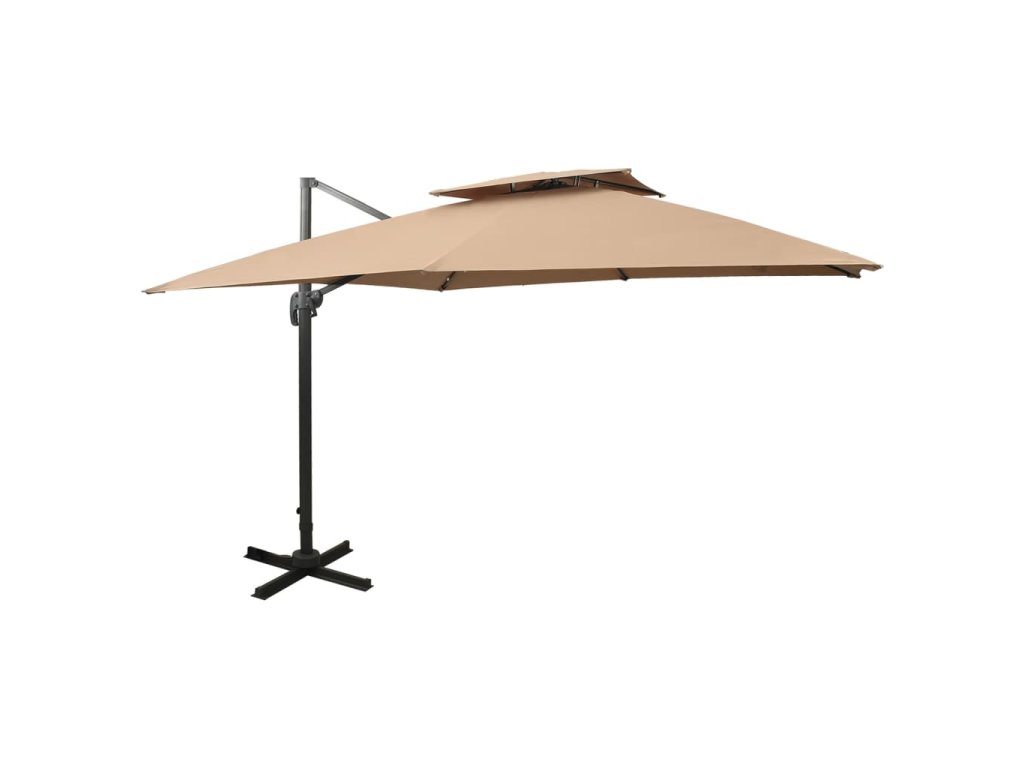Vrch slnečníka vám poskytne optimálnu ochranu pred slnkom a ľahko sa čistí, pretože je vyrobený z polyesteru odolného voči UV žiareniu a vyblednutiu. Má stabilný krížový podstavec, ktorý mu dodáva stabilitu. Exkluzívny dizajn umožňuje slnečník nakloniť a otáčať o 360 stupňov, aby zablokoval zapadajúce slnko. Vďaka pevnej hliníkovej tyči a 8 rebrám je slnečník veľmi stabilný a trvácny. Tento záhradný slnečník sa dá ľahko otvárať a zatvárať vďaka kľukovému mechanizmu. Dvojitý vrchný kryt navyše umožňuje vetranie.