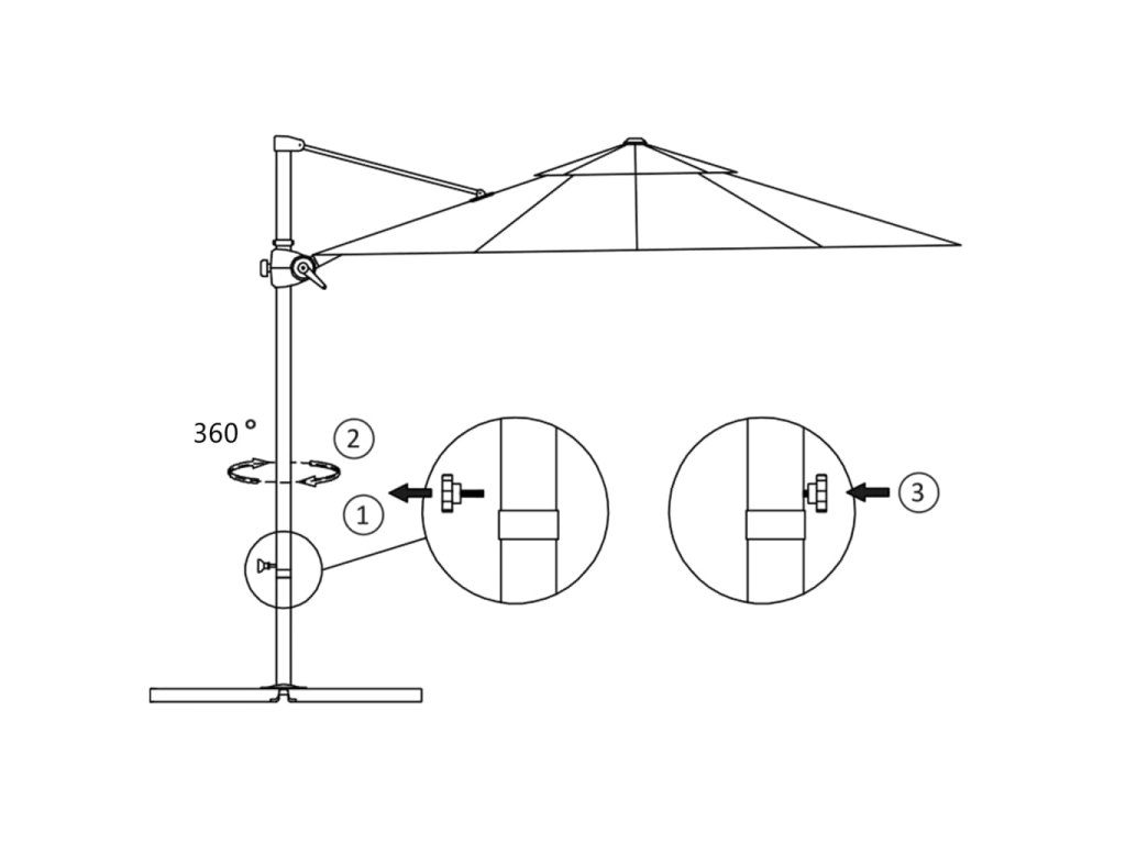 Upozorňujeme, že sa odporúča látku slnečníka ošetriť impregnačným sprejom v prípade, že bude vystavený silnému dažďu.